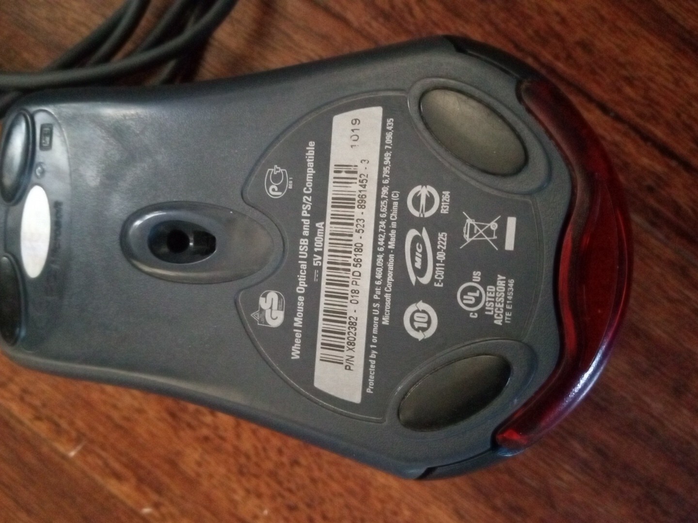 как выглядит Microsoft Wheel Mouse Optical USB X802382 1.1A Black Tested фото