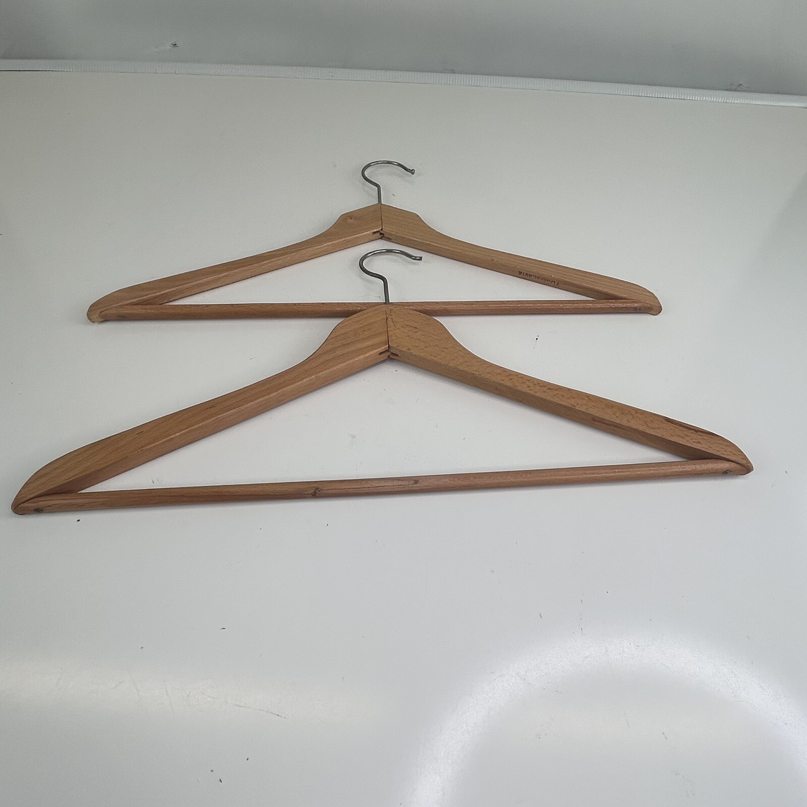 как выглядит Vintage Hardwood Lacquered Coat Suit Hangers Matching фото