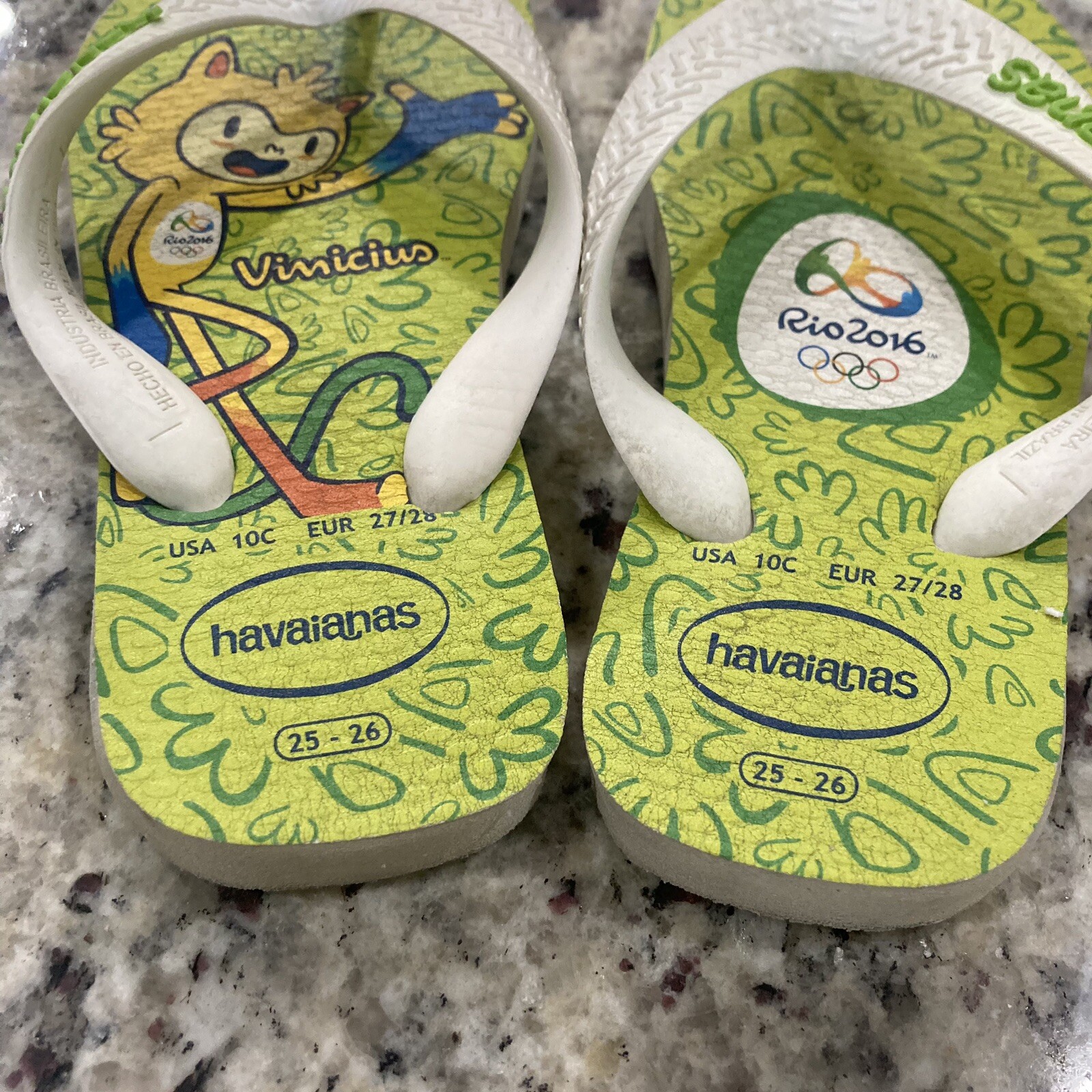 как выглядит Havaianas Flip Flips 10C Rio2016 Olympics Preowned Not Perfect фото