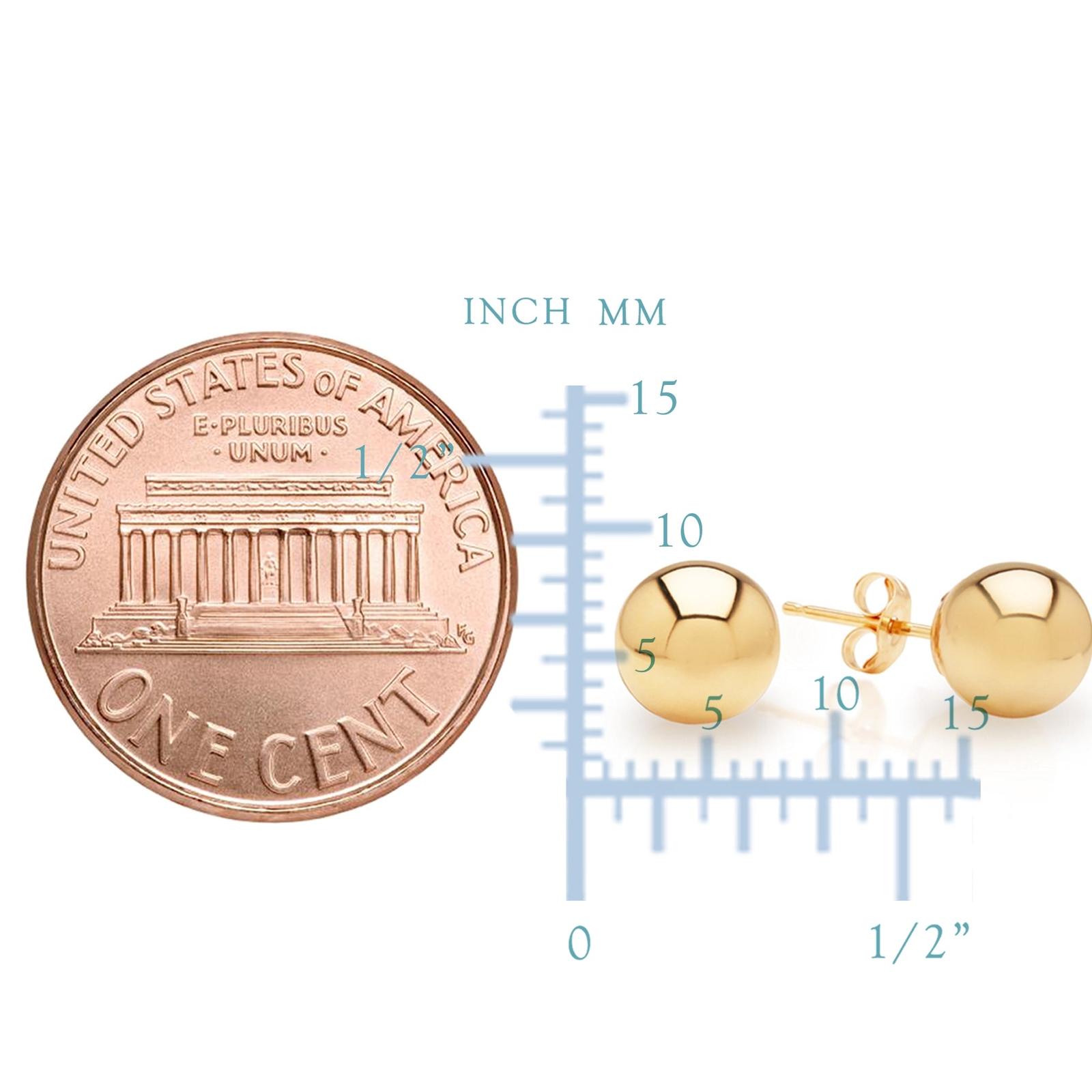 10K Yellow Gold Ball Stud Earrings, 5mm