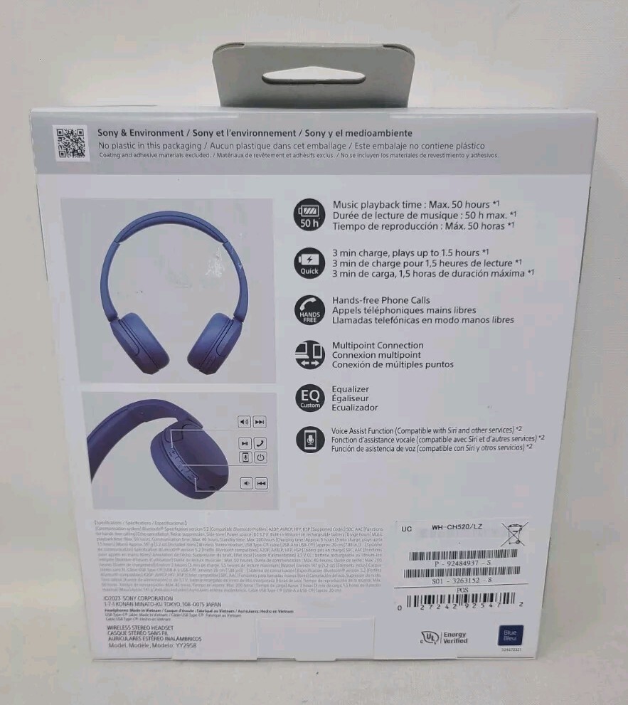Sony - WH-CH520 Wireless Headphone with Microphone - Blue. New-Factory Sealed