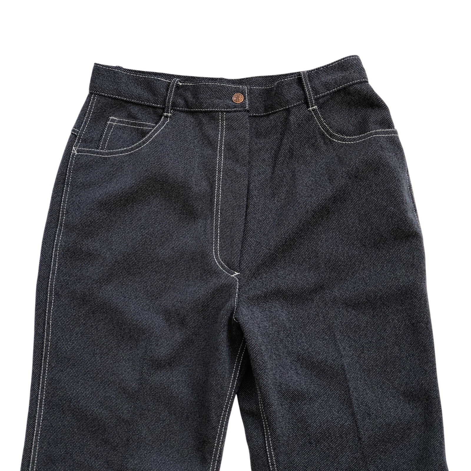 Vintage Western Flare Pants Sears, Dark Blue Denim Look Stretch 1970s Retro