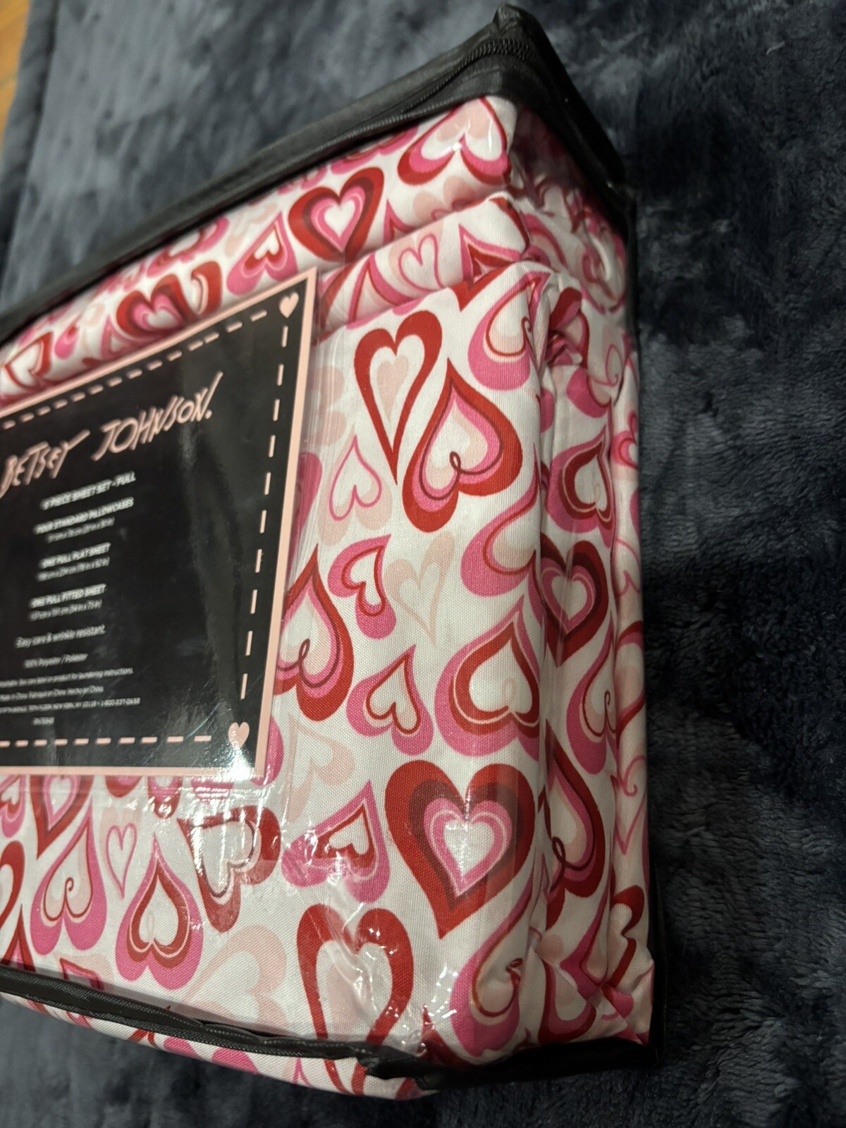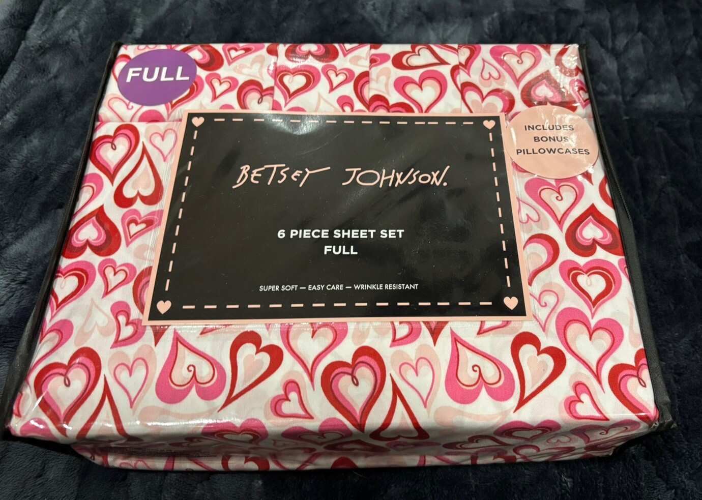 BETSEY JOHNSON Pink Red Hearts Valentine's Full 6 Piece Bed Sheet Set