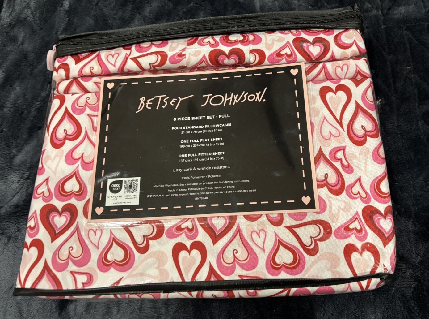 как выглядит BETSEY JOHNSON Pink Red Hearts Valentines Full 6 Piece Bed Sheet Set фото