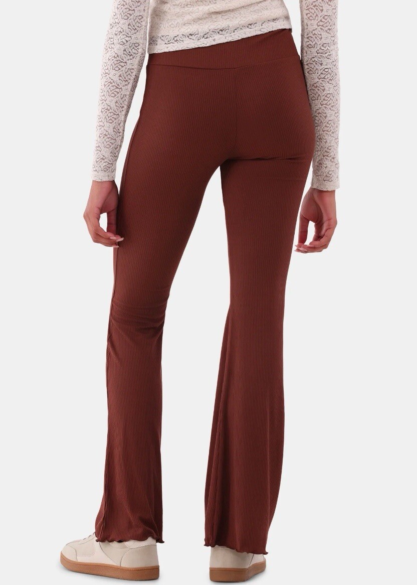 как выглядит No Boundaries Womens Juniors Ribbed Flare Lettuce Hem Pants Zinfandel фото
