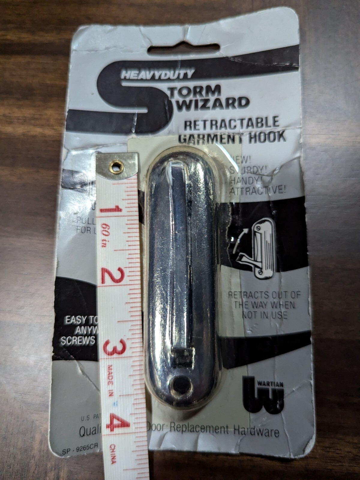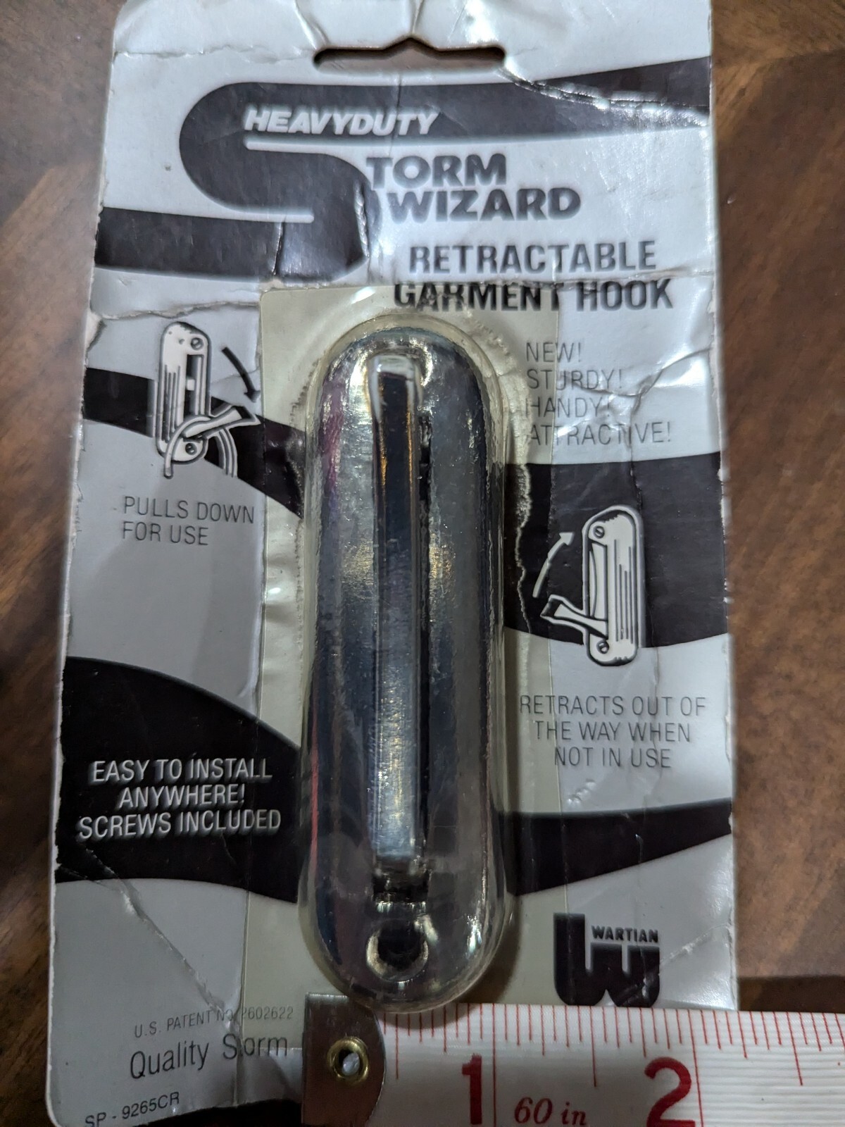 как выглядит Vintage NEW Heavy Duty Retractable Garment Hook Wall Mount Steel Storm Wizard фото