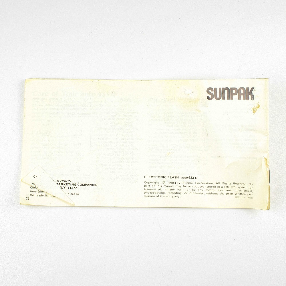 Sunpak auto433 D Thyristor Electronic Flash Owner's Manual - Instruction Booklet
