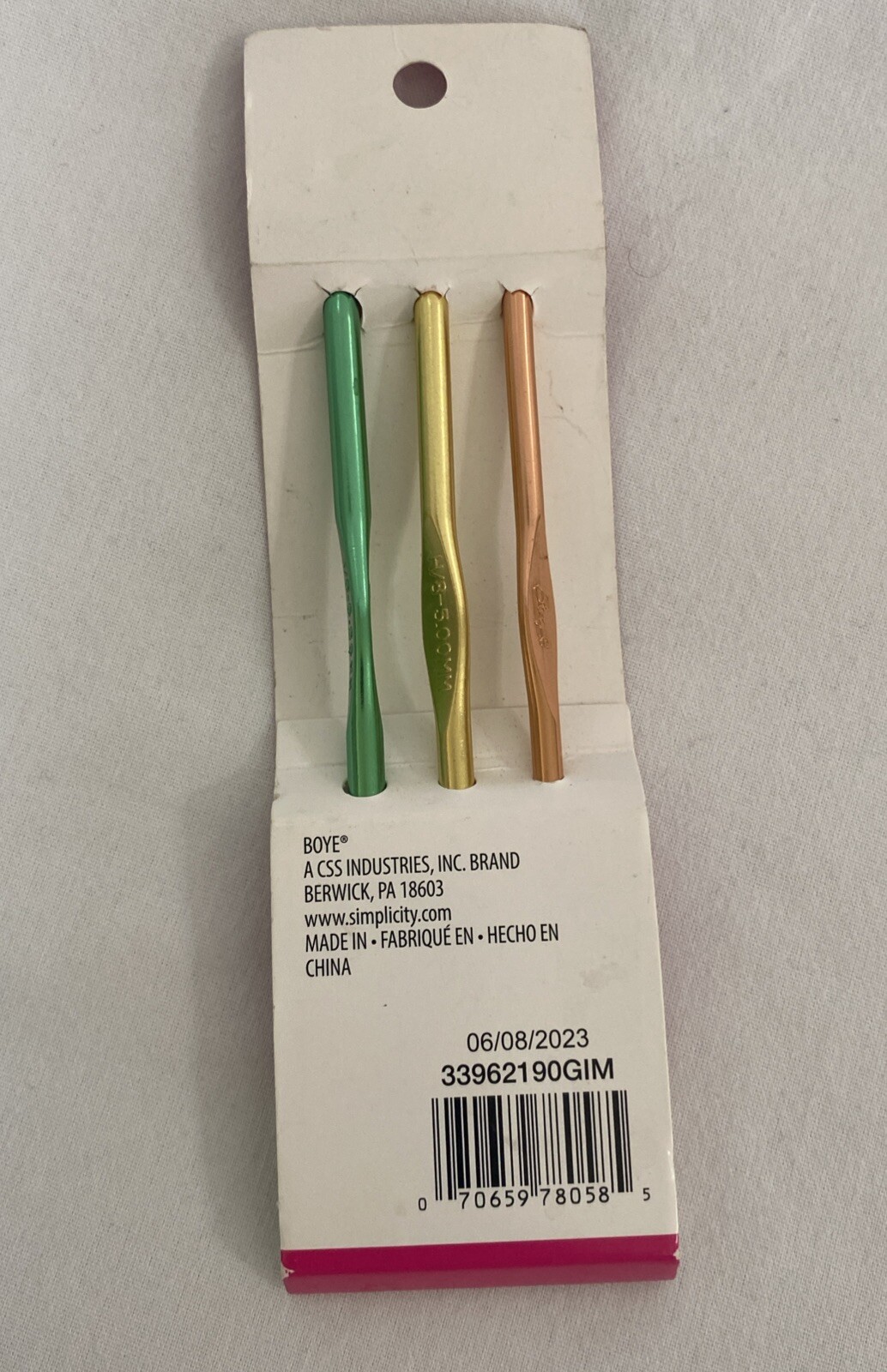 Boye 6219 Anodized Aluminum Crochet Hook Set-US G/H/I -4.25/5/5.25 mm -NEW
