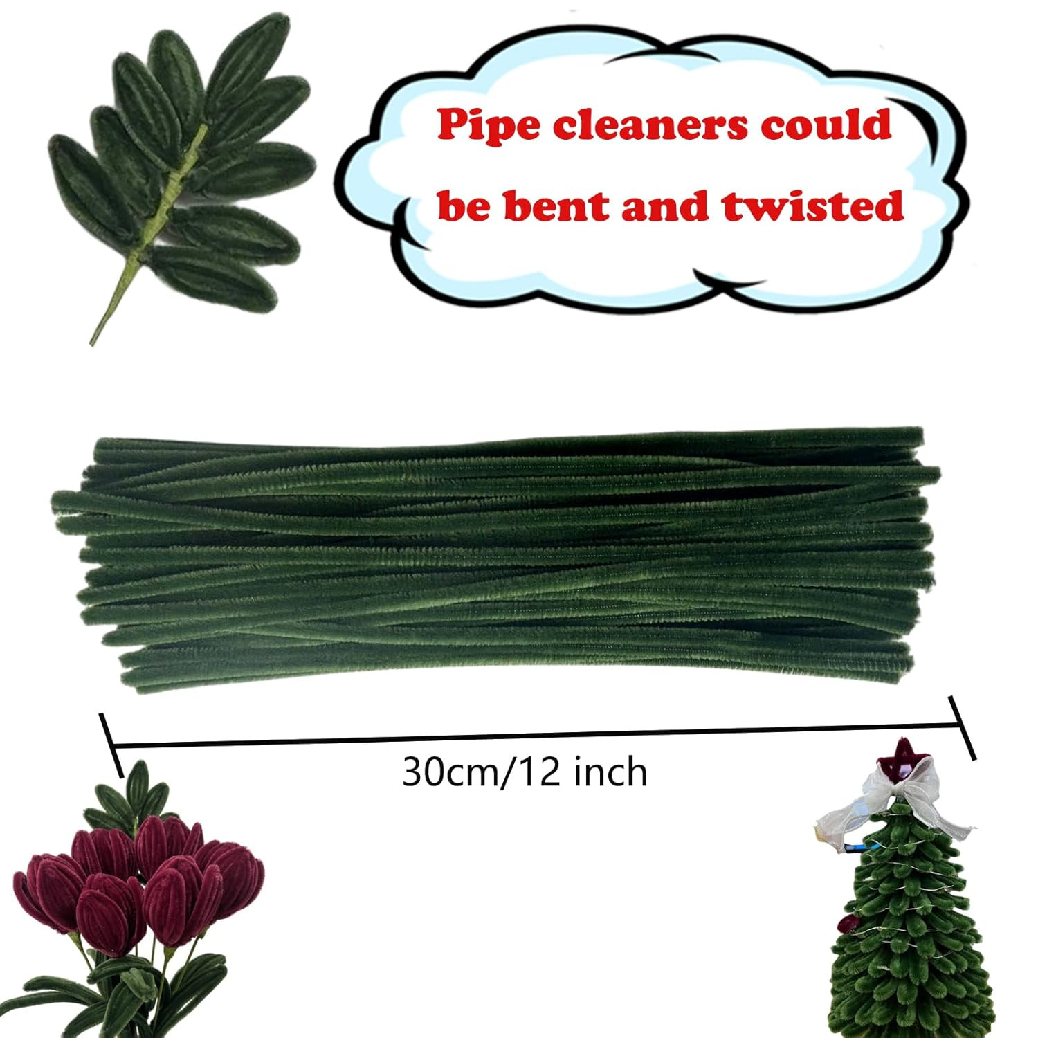 100 Pieces Pine Green Pipe Cleaner Craft Set,Thick Fuzzy Chenille Stem Pipe Clea