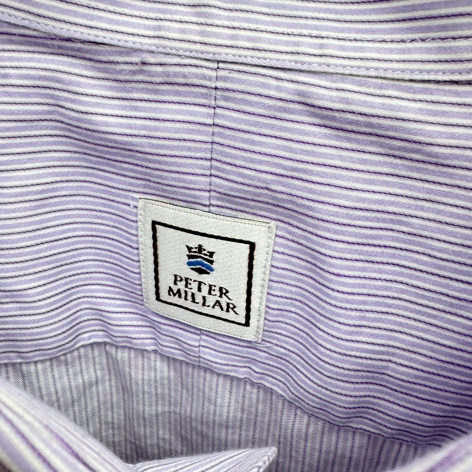 Peter Millar Men's L Purple Striped Long Sleeve Button Down Casual Dress Shirt