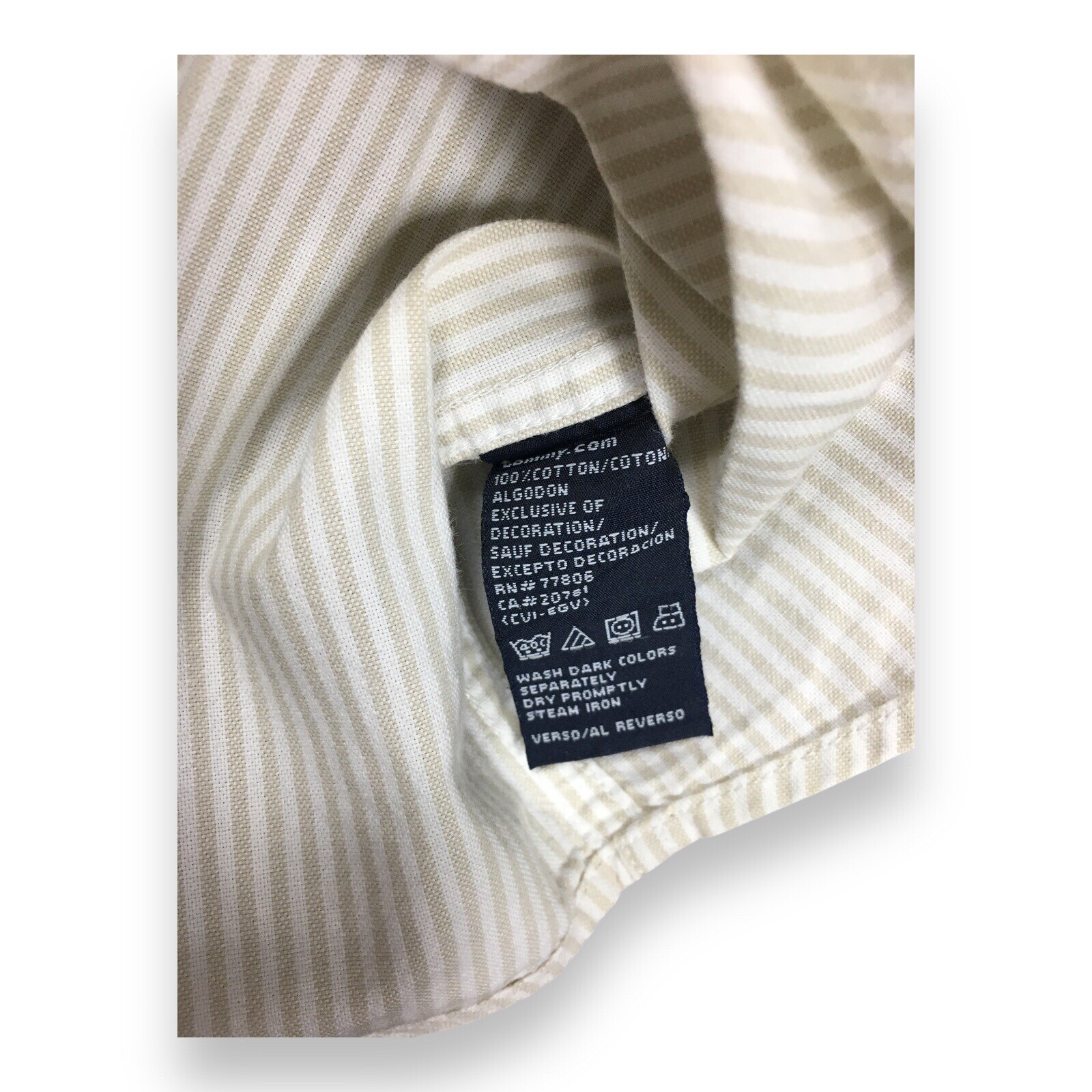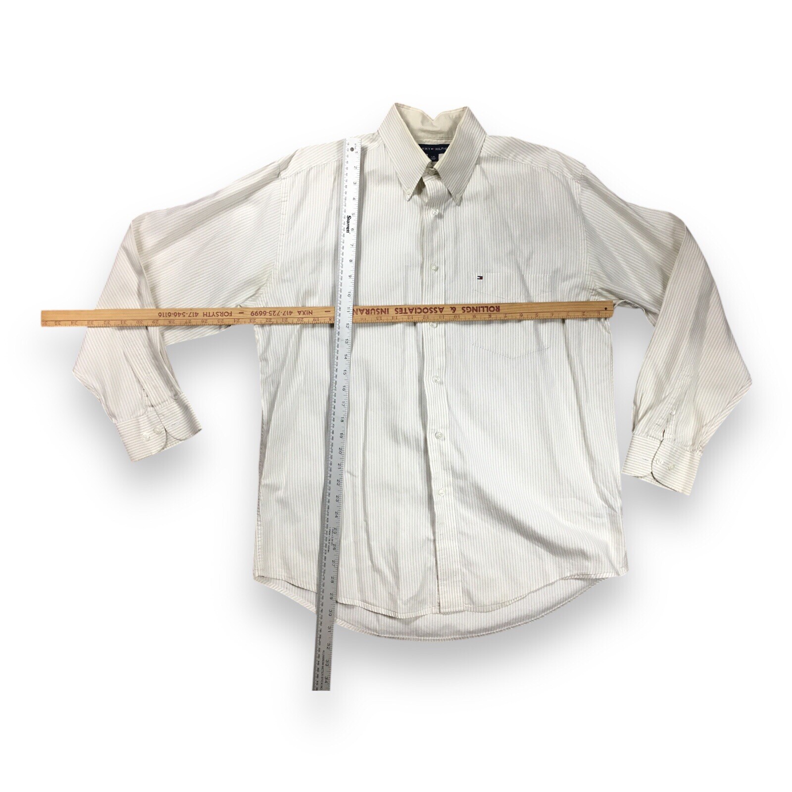 Tommy Hilfiger Mens L White Striped Long Sleeve Button Down Dress Shirt Slim