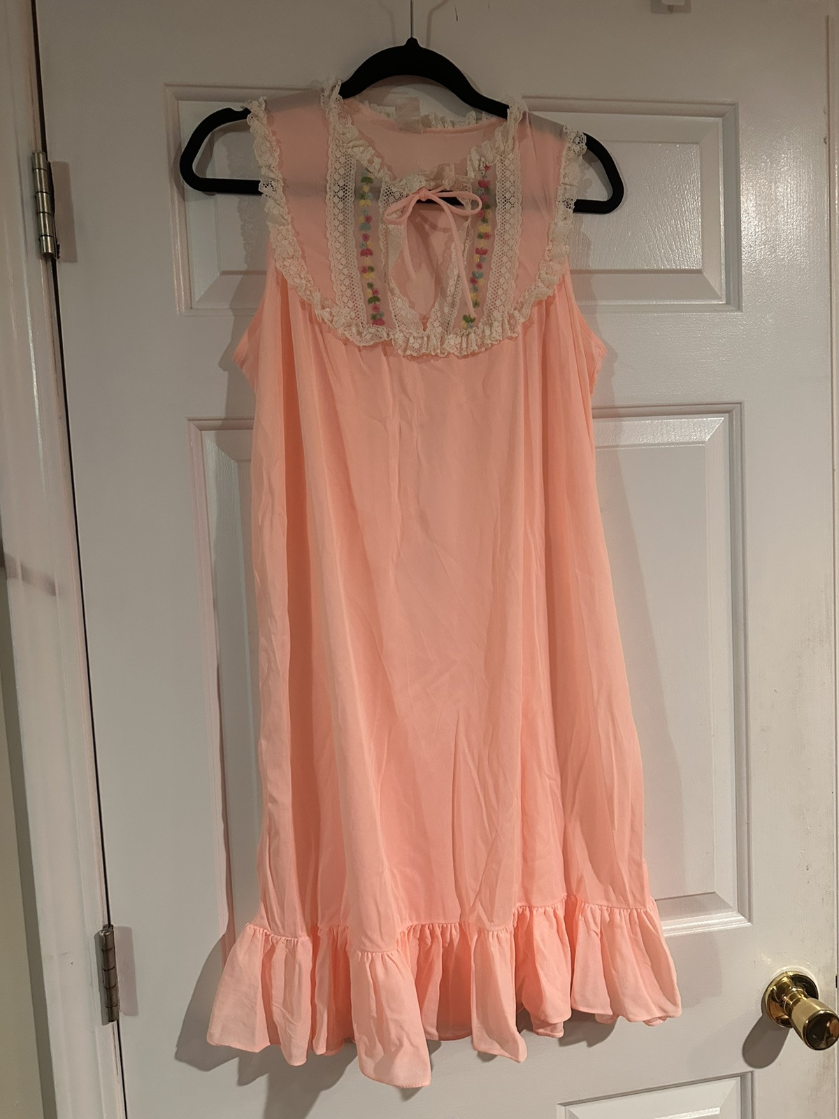как выглядит Vintage Baby Doll Lady s 60 s Peach Lace Trim Nylon Nightgown MEDIUM фото