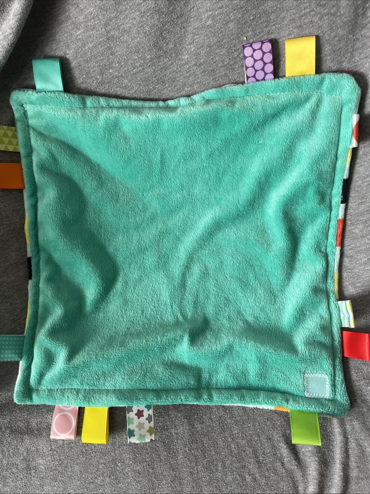 TAGGIES Bright Starts Plush Tag Baby Lovey Security Blanket Aqua Squares Multi