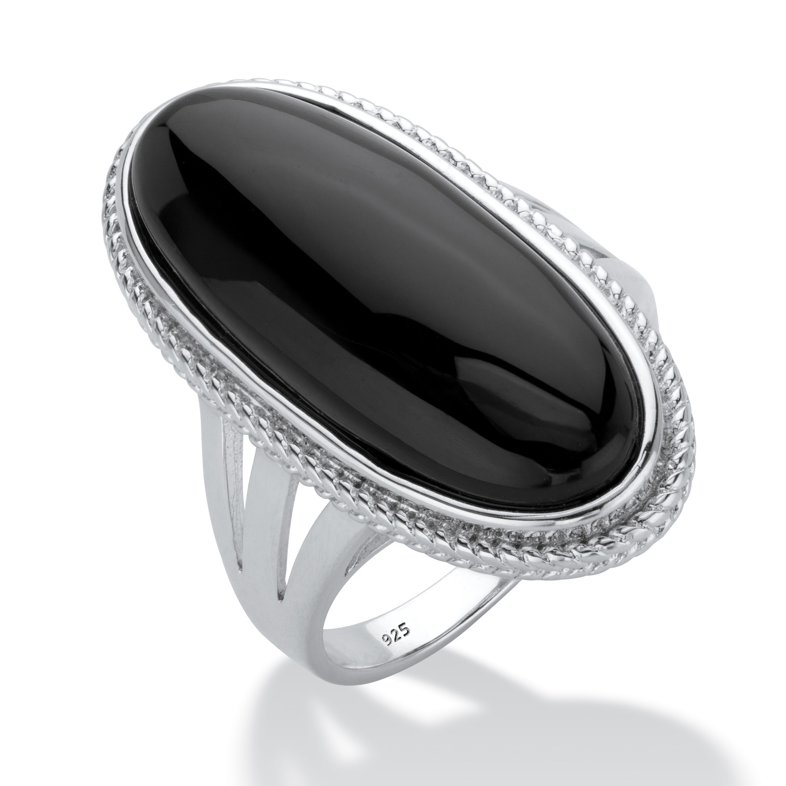 Genuine Black Onyx Sterling Silver Oval Cabochon Ring