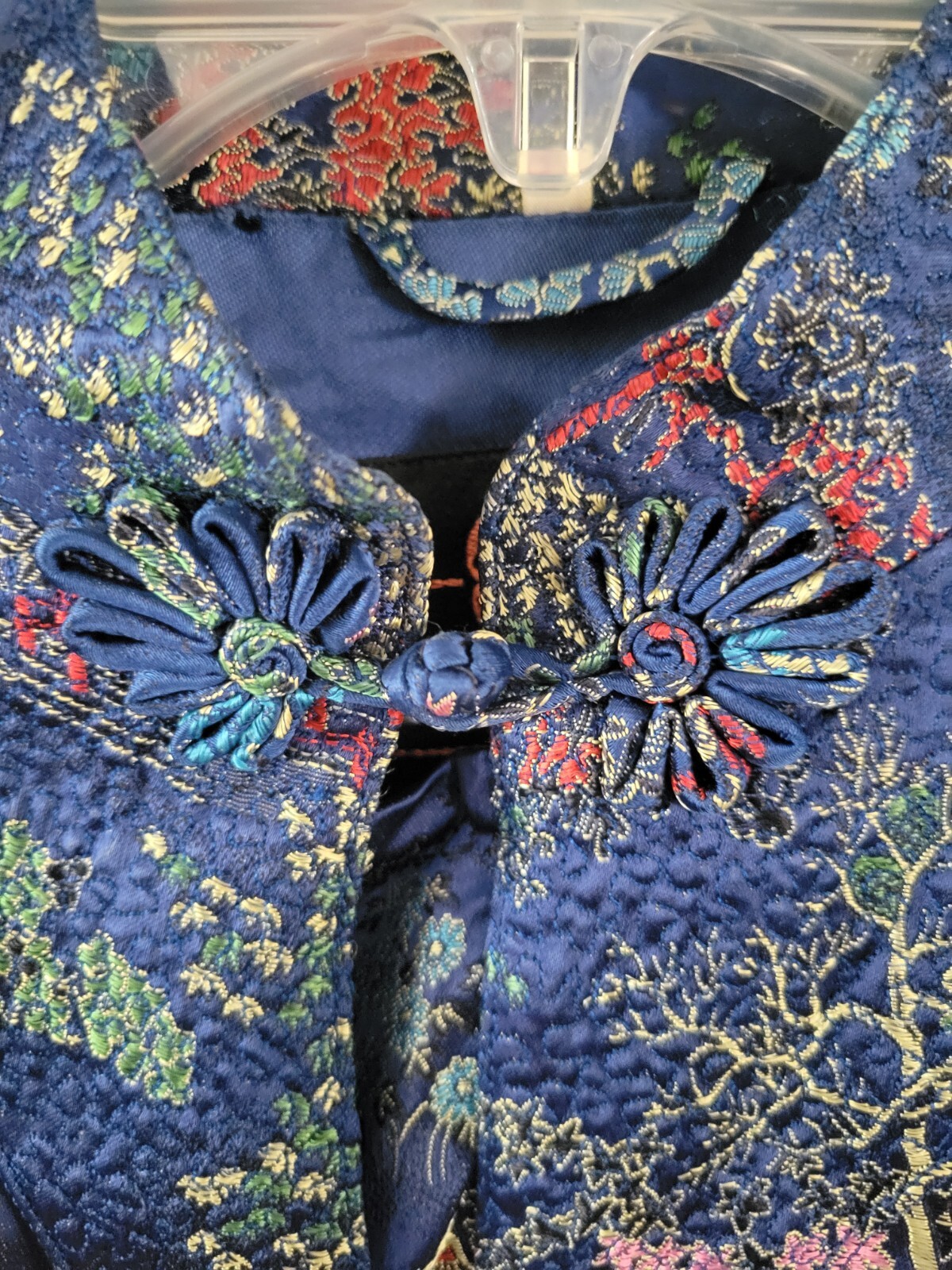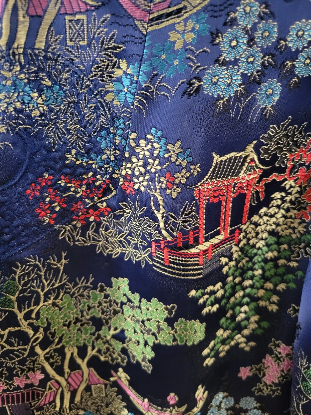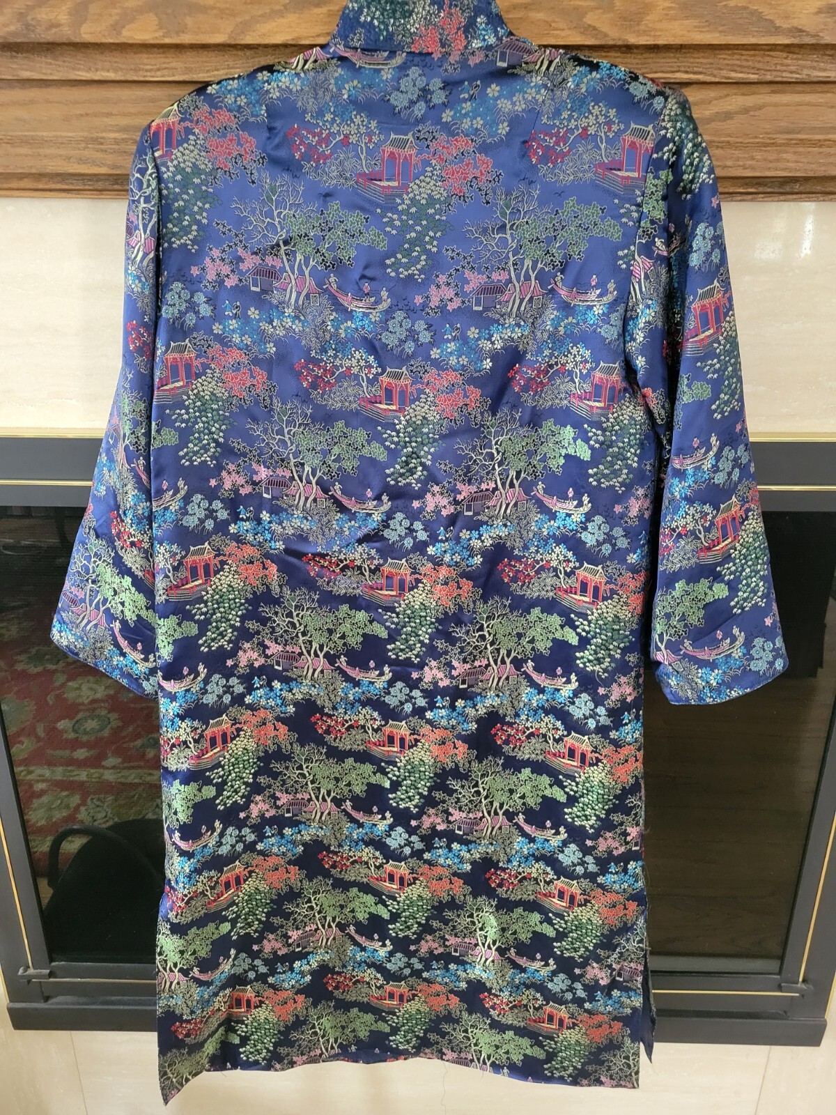 как выглядит VTG Blue Patterned Asian Silk Kimono Robe Lined Sz M фото