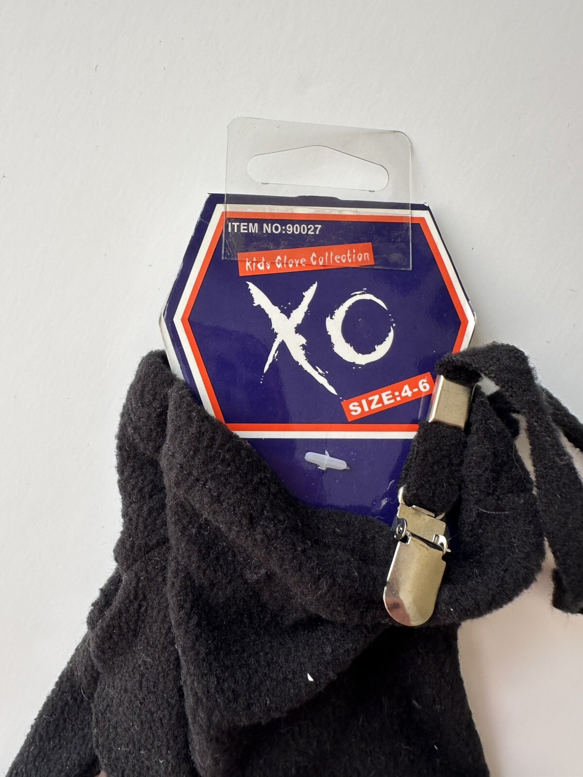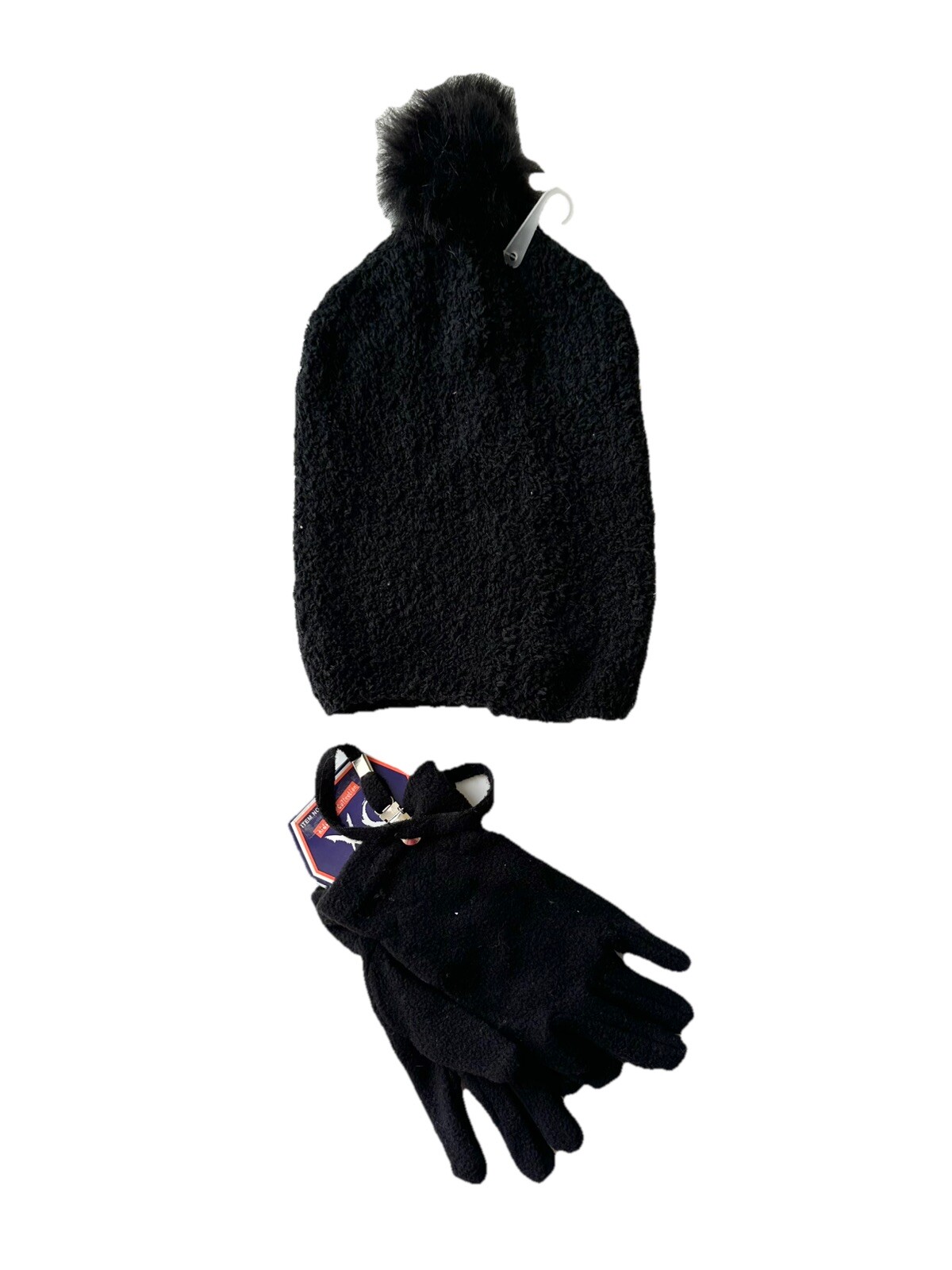 Girl's 4-6 S Hat Gloves Black Solid Faux Fur Pom Pom Beanie Fleece Winter