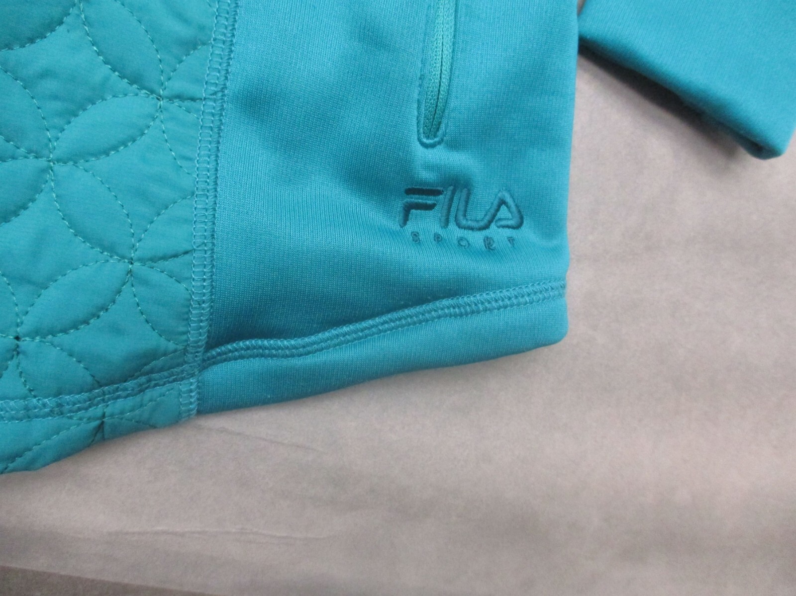 как выглядит FILA Size M Womens Teal Full Zip Stand Collar Hi-Pile Lined Athletic Jacket 850 фото