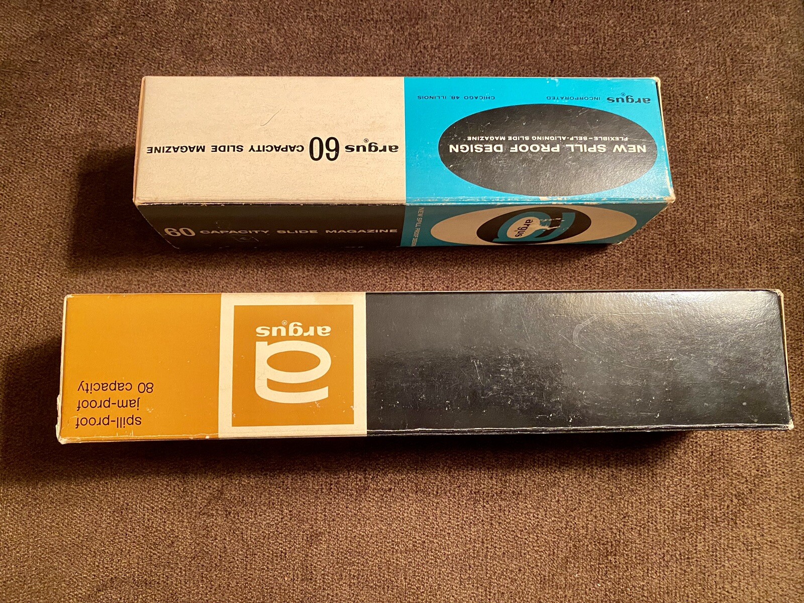 Lot of 2 Vtg Argus Slide Magazines 80 60 Tray Capacity Original Box Projector