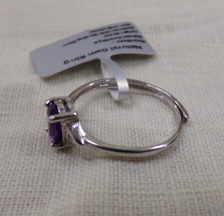 как выглядит Womens Adjustable Silver Ring Signed 925 Natural Oval Shaped Amethyst Stone NEW фото