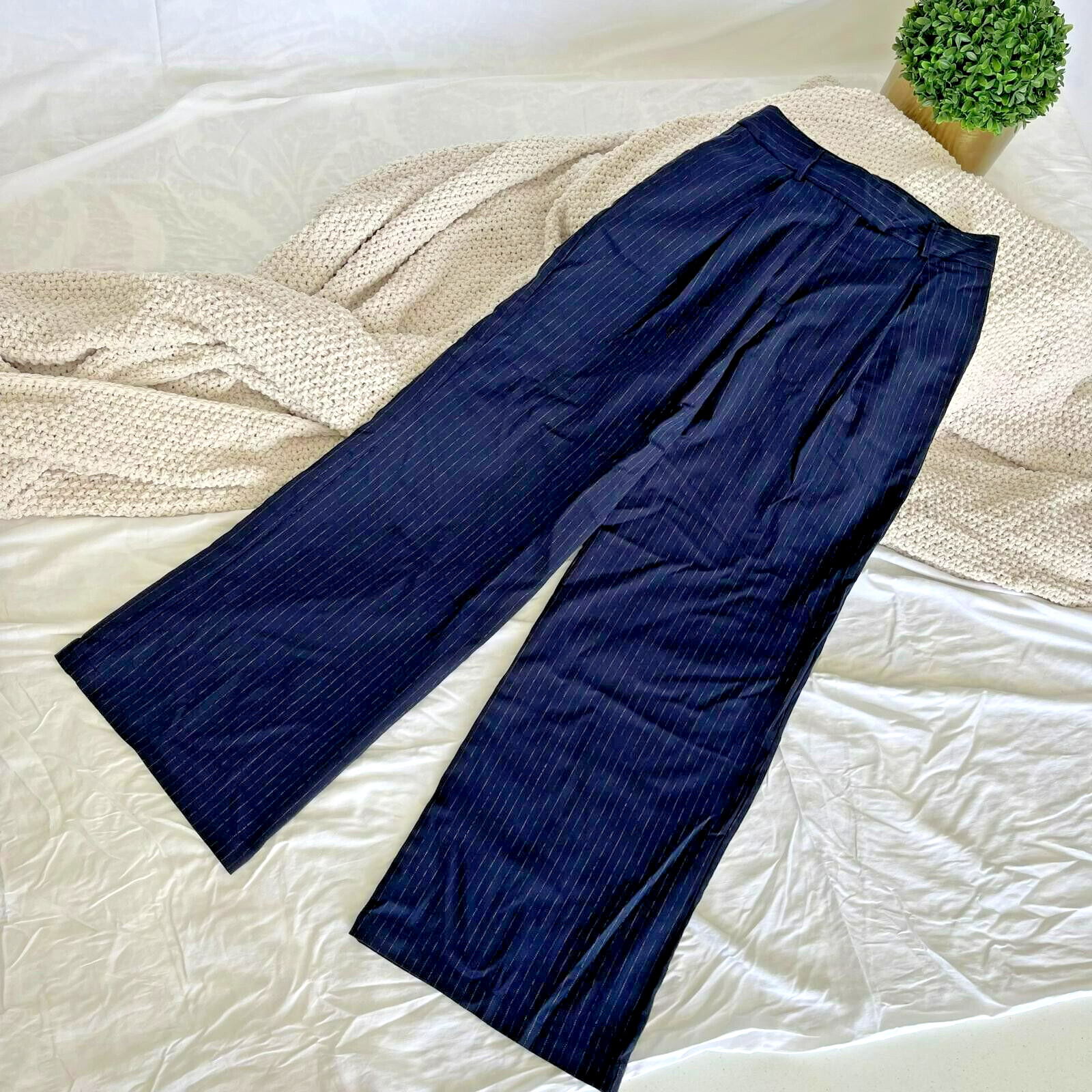 как выглядит Forever 21 Pinstripe Wide-Leg Pants - Navy Size M фото