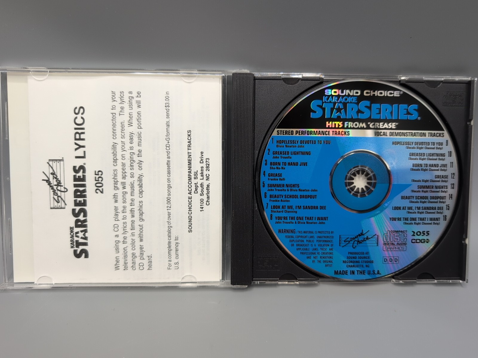 SC2055 HITS FROM GREASE SOUND CHOICE KARAOKE CDG HARD TO FIND