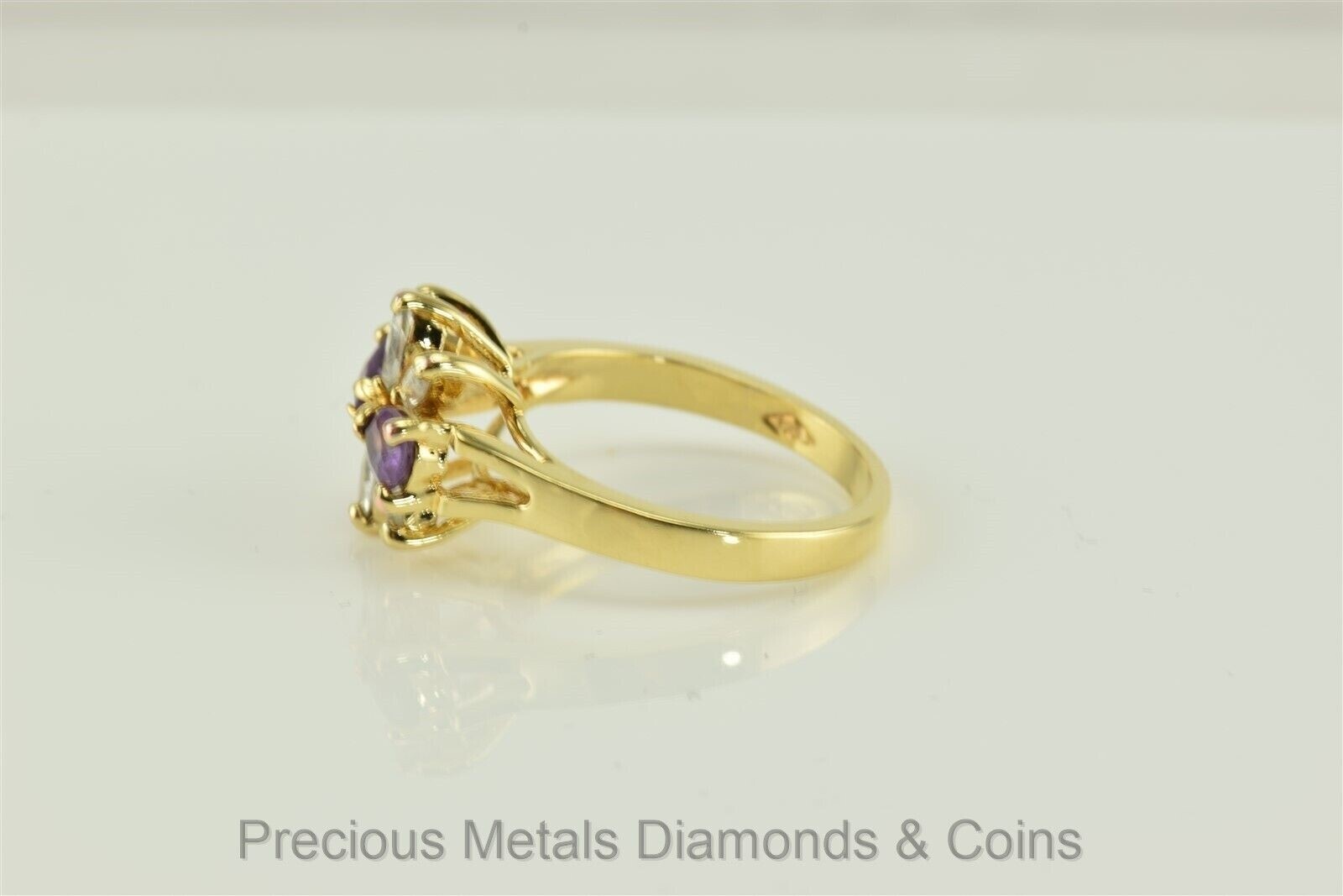 Gold over Sterling Silver Purple Amethyst Cluster Flower Band Ring 925 Sz: 9