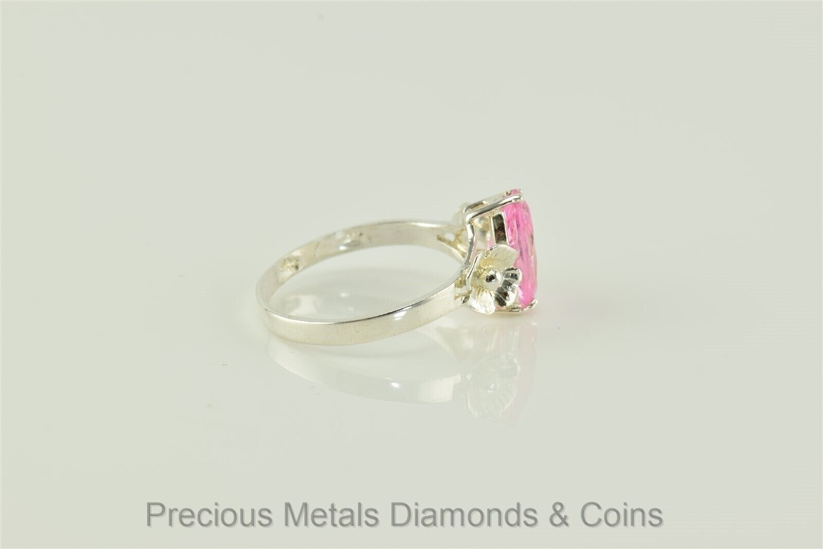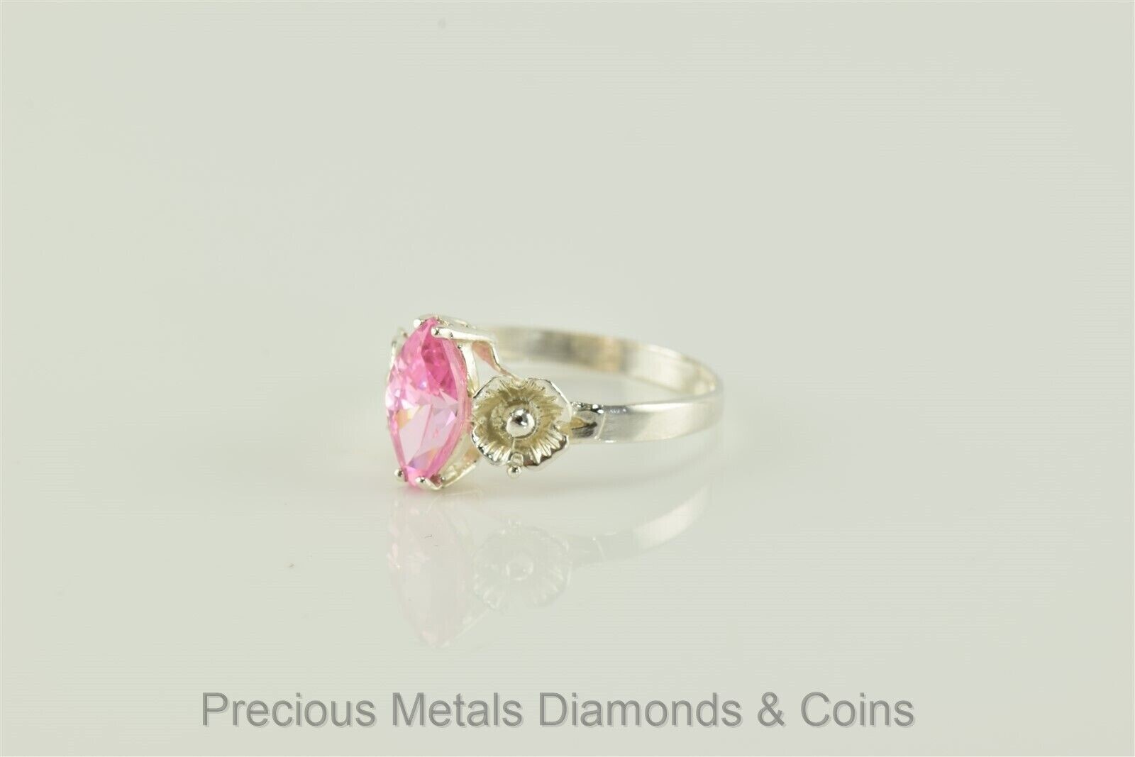 Sterling Silver Pink Cubic Zirconia Marquise Flower Accent Band Ring 925 Sz: 6.5