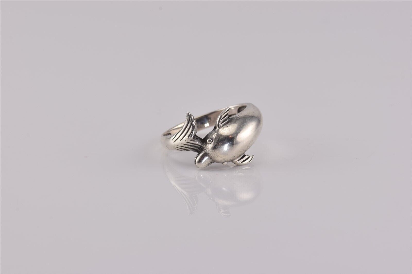 как выглядит Sterling Silver 14mm Dolphin Fins Tail Wrap Around Band Ring 925 Sz: 7.5 фото