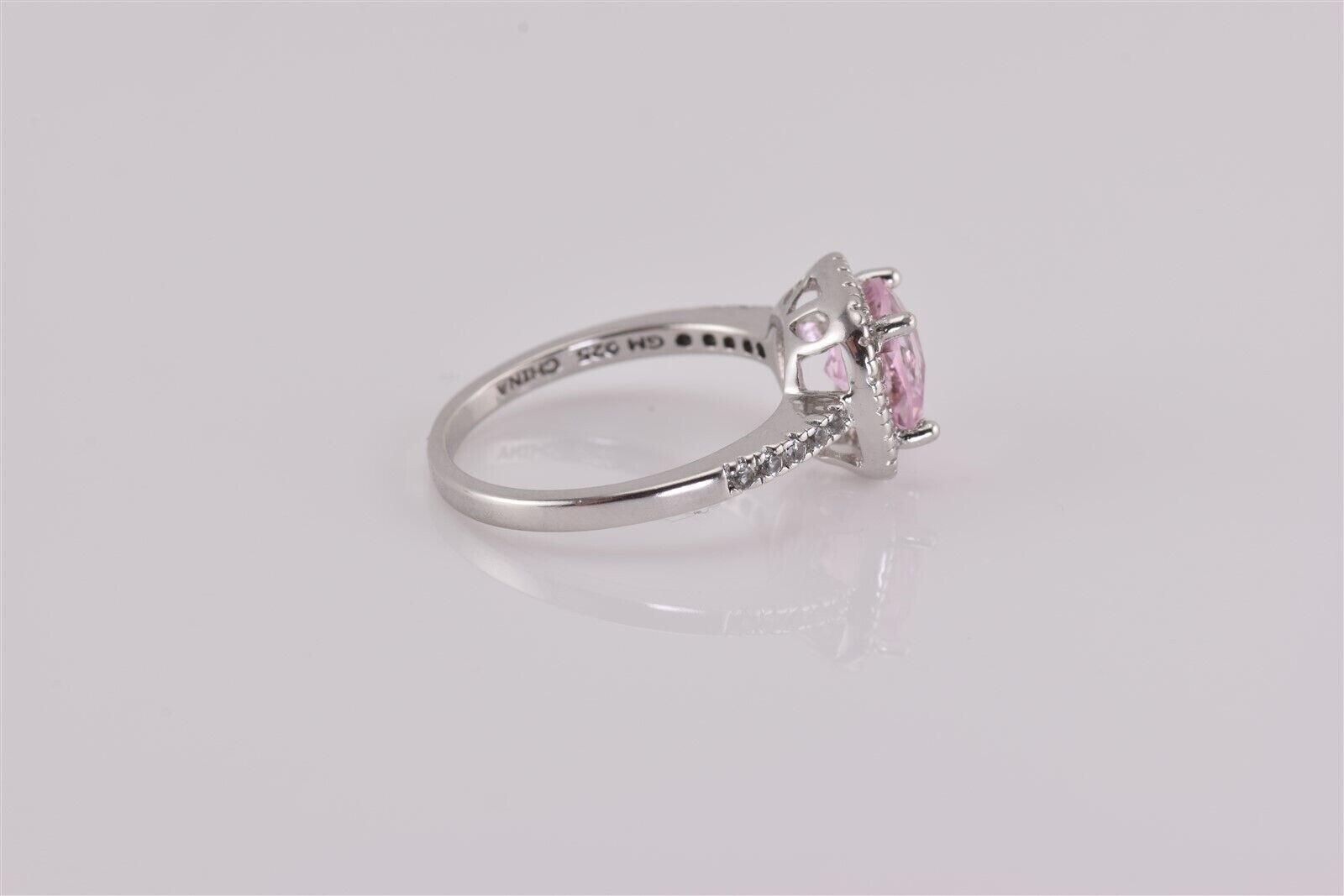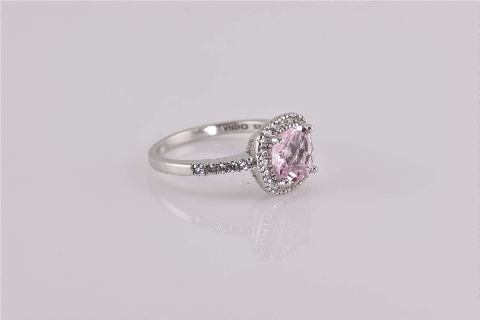 как выглядит Sterling Silver Pink Cushion Cubic Zirconia Halo Accented Band Ring 925 Sz: 5.5 фото