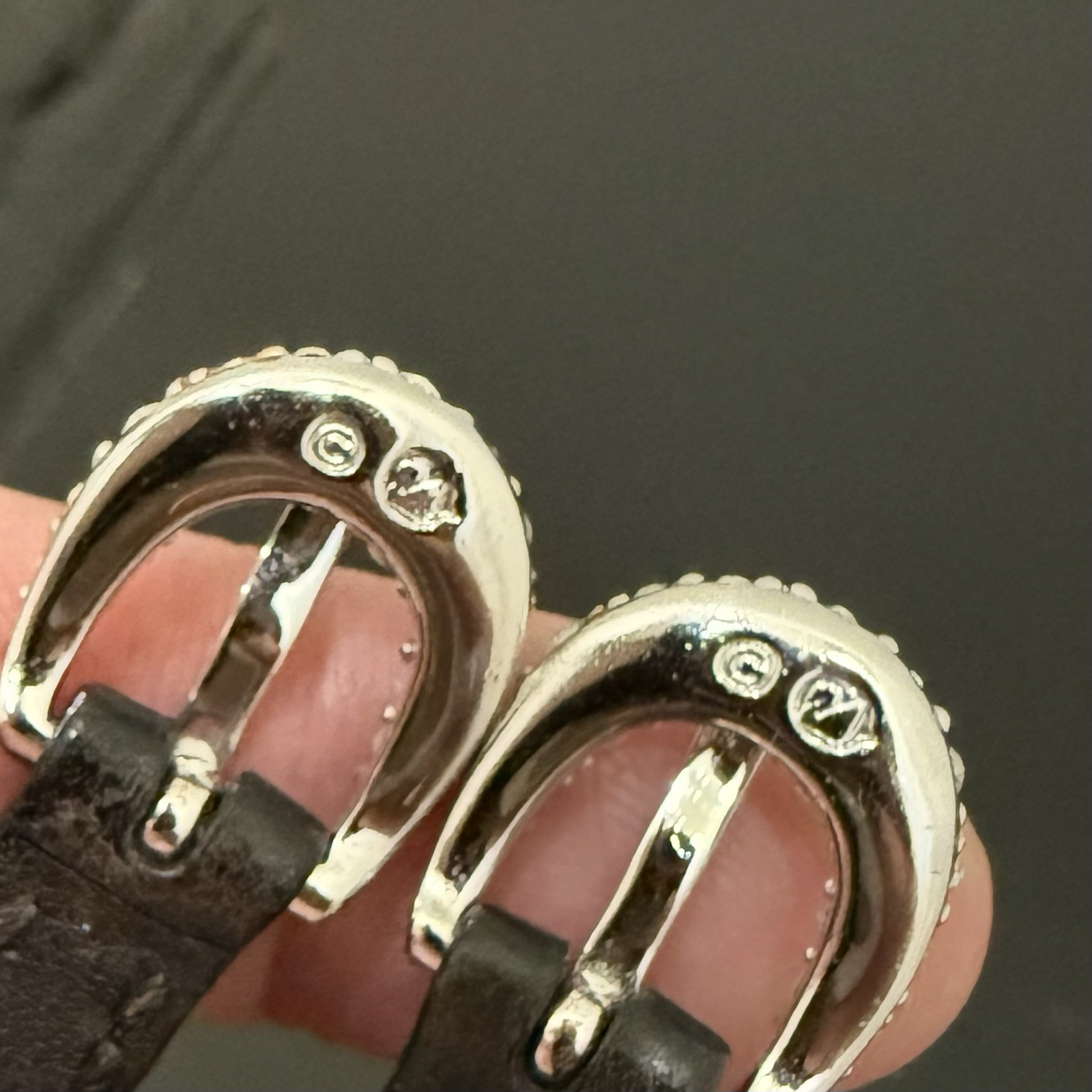 как выглядит SWAROVSKI Swan Signed Crystal Rhinestones Leather Buckle Wide Cuff Bracelet 24g. фото