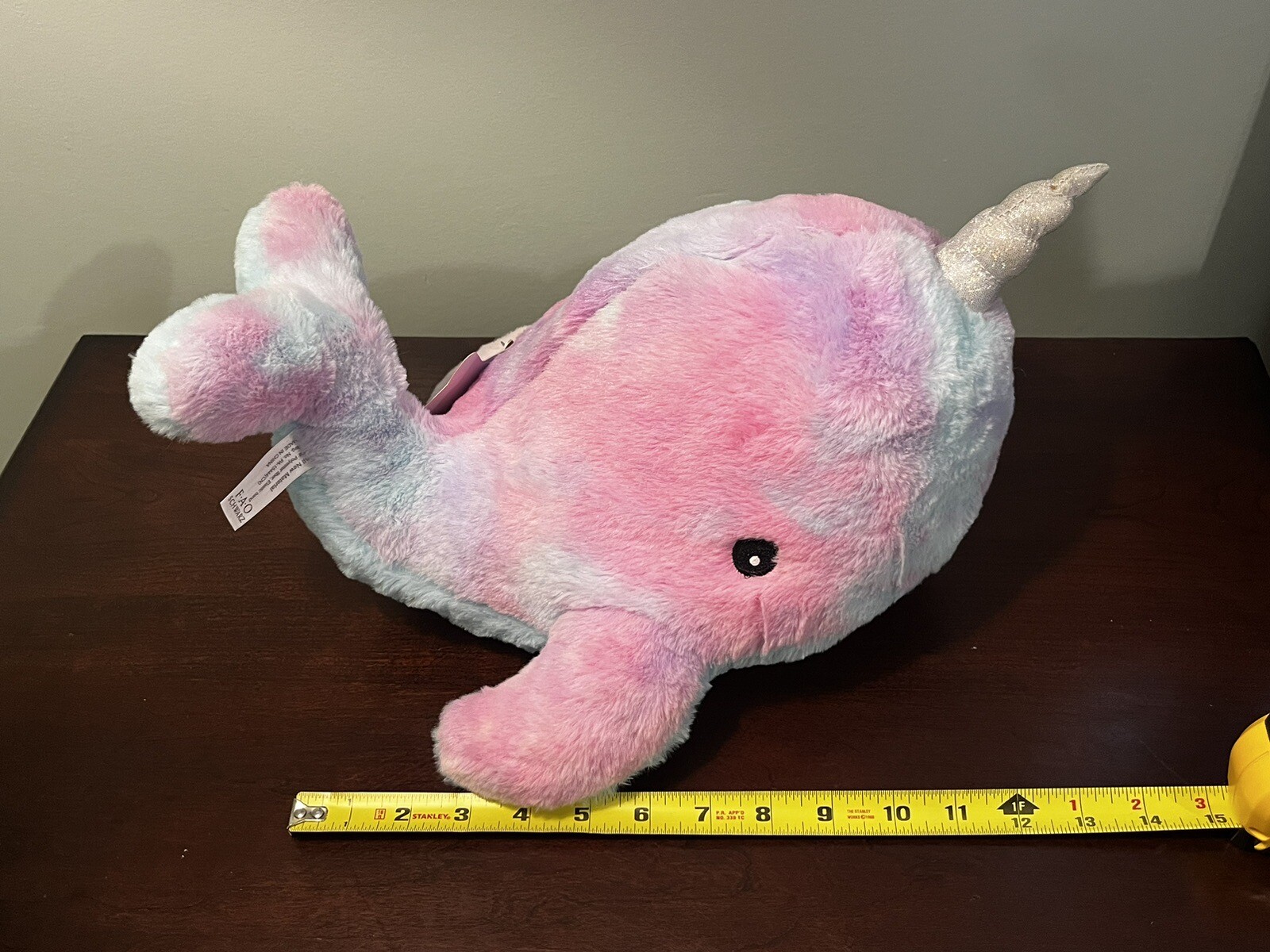 как выглядит FAO Schwarz Glow Brights Narwhal Plush with Lights Sounds Purple Pink Blue TAGS фото