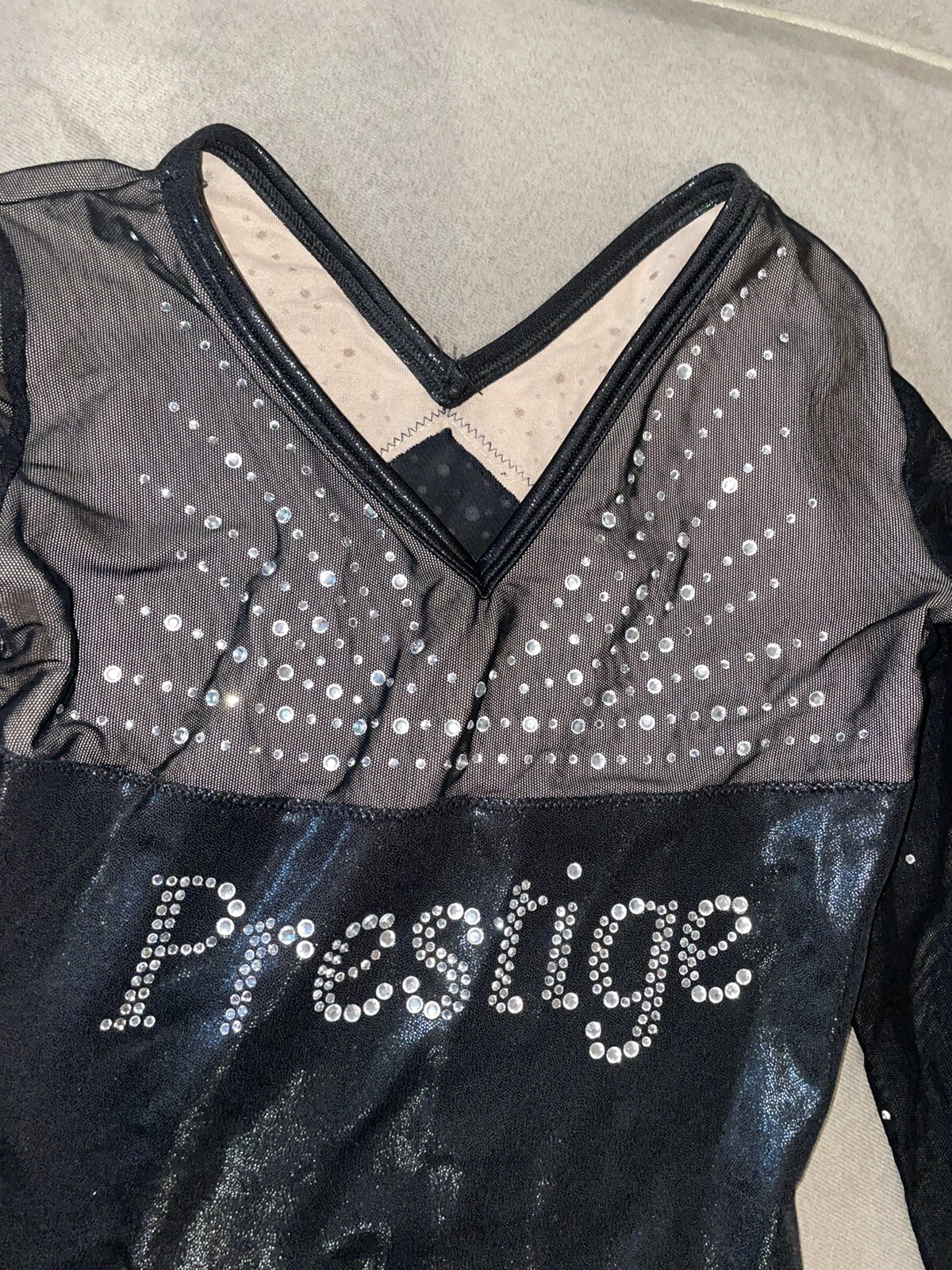 Alpha Factor Child Large Gymnastic Leotard Black Long Sleeve Swarovski Crystals
