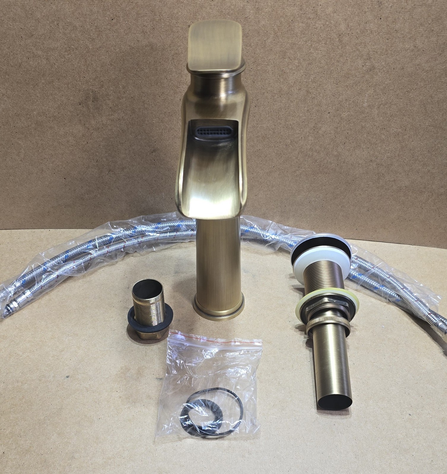 Waterfall Single Hole Single Handle Bathroom Faucet/Drain Assembly/Antique Brass