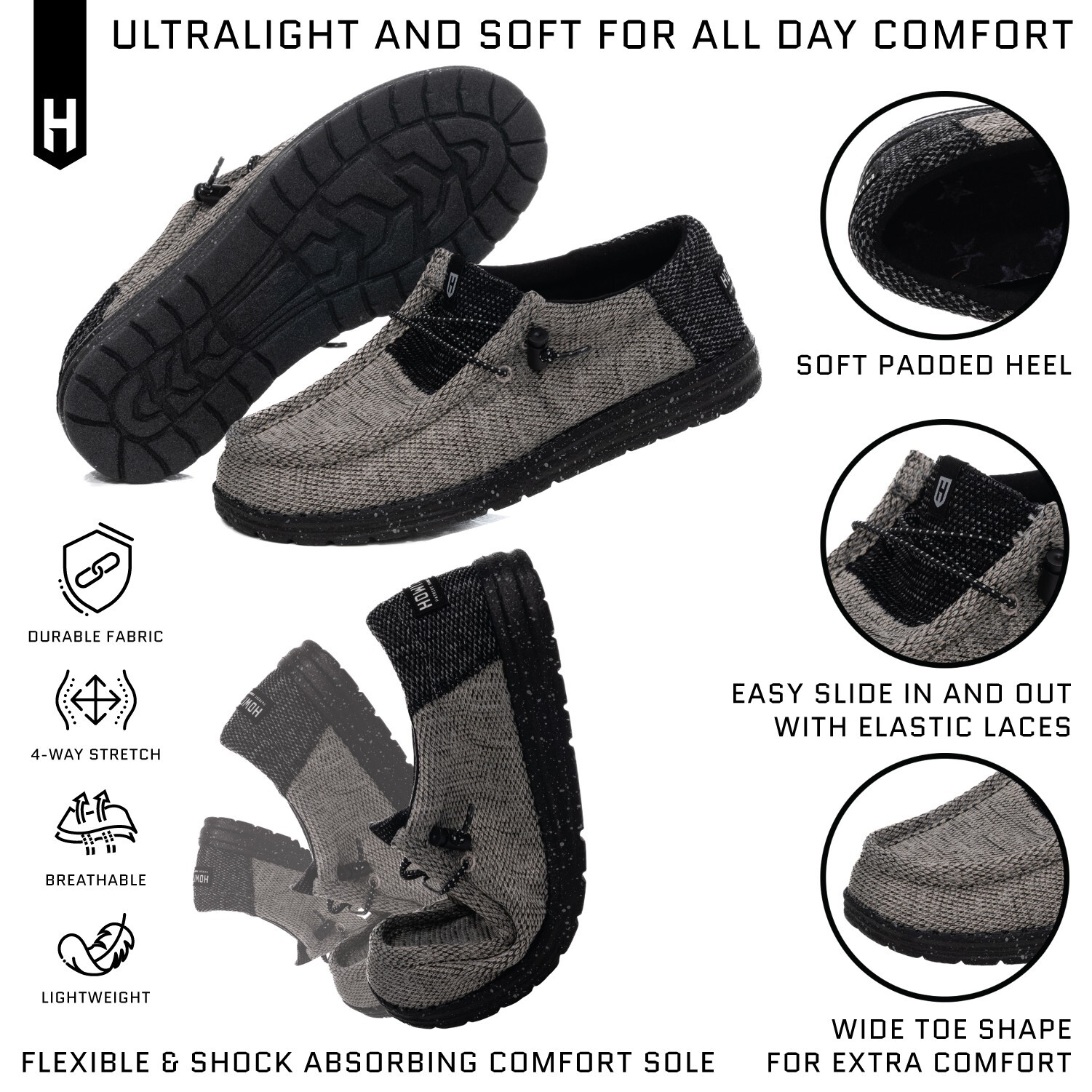 Howitzer Unisex Slip-On Shoes Sneakers with Camo Print Roam Blackout