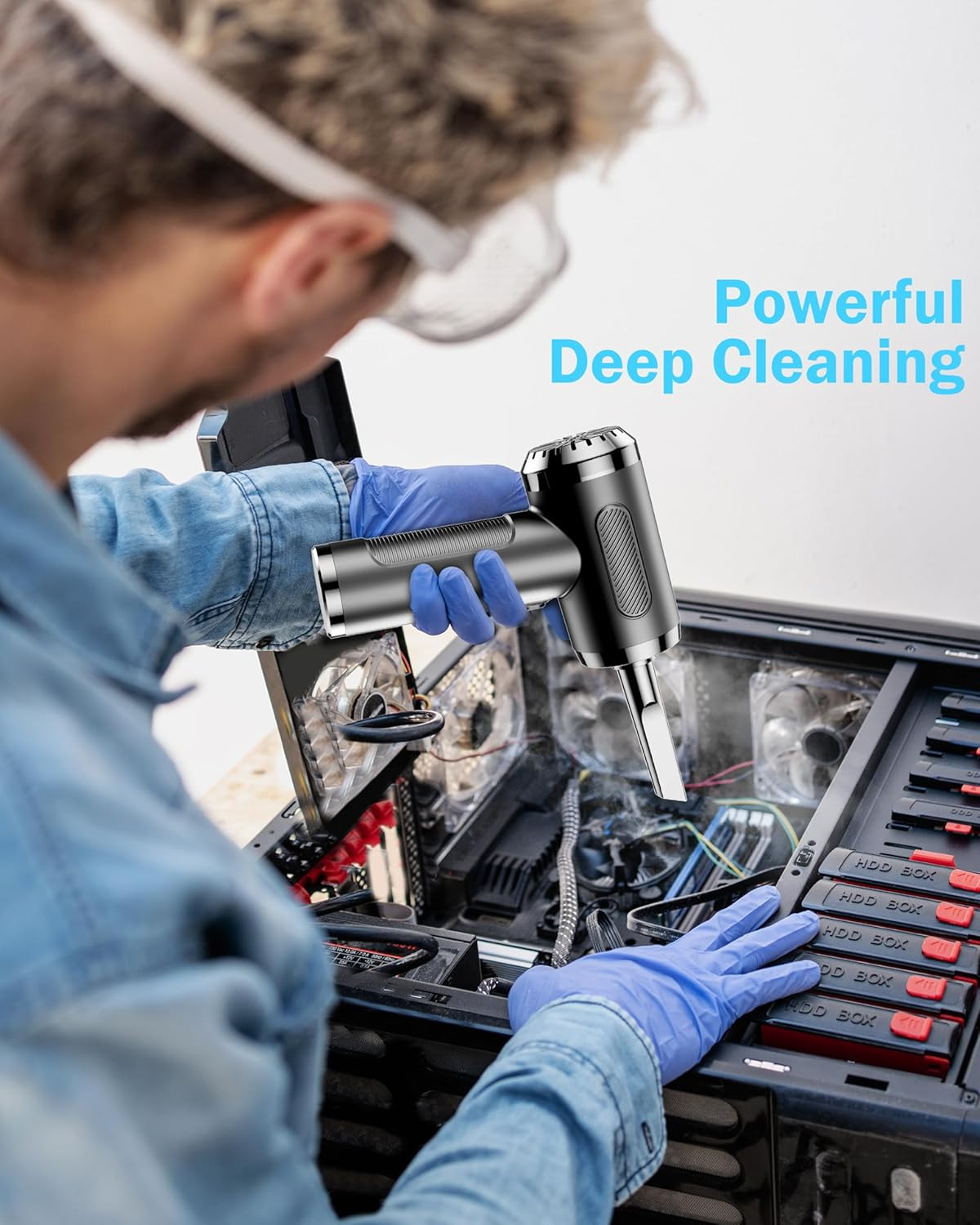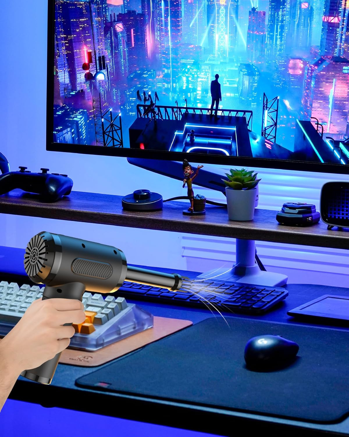 как выглядит Compressed Air Duster, Electric Air Blower Cleaner with LED Light for Computer, фото