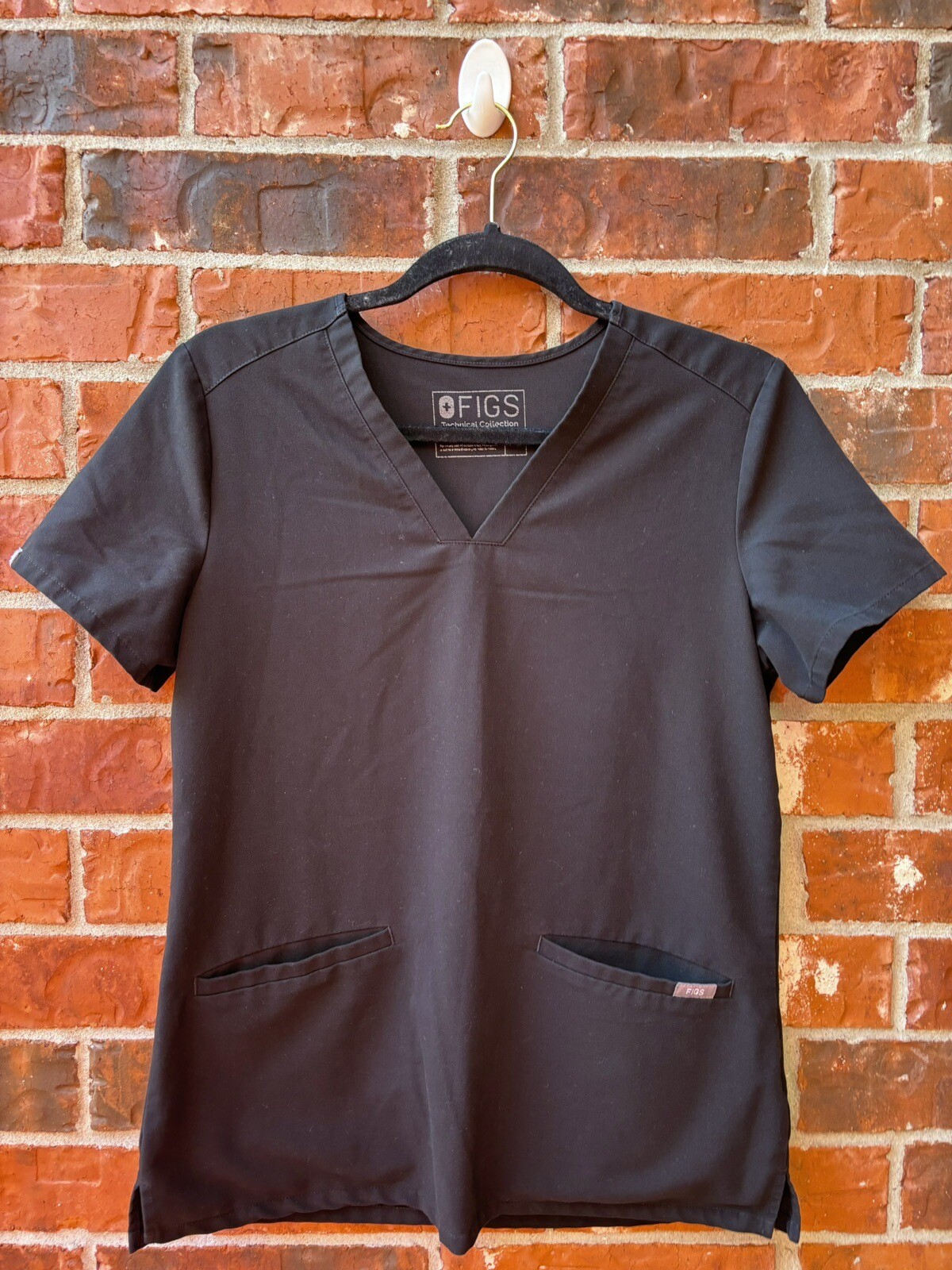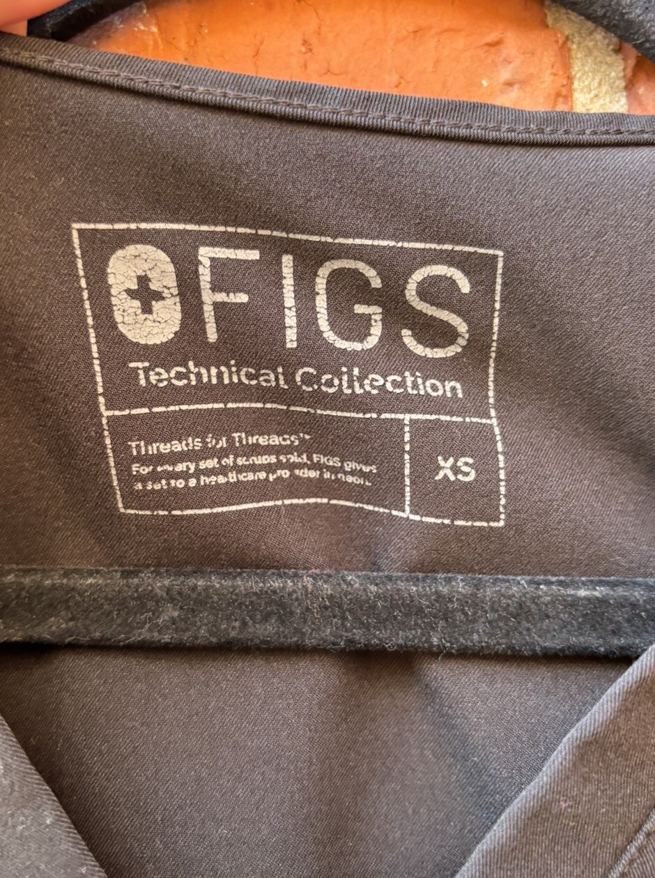 как выглядит Figs Womens XS Black Technical Vneck Short Sleeve Medical Uniform Scrubs фото