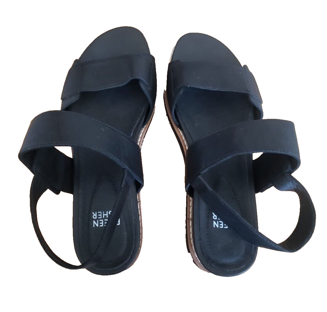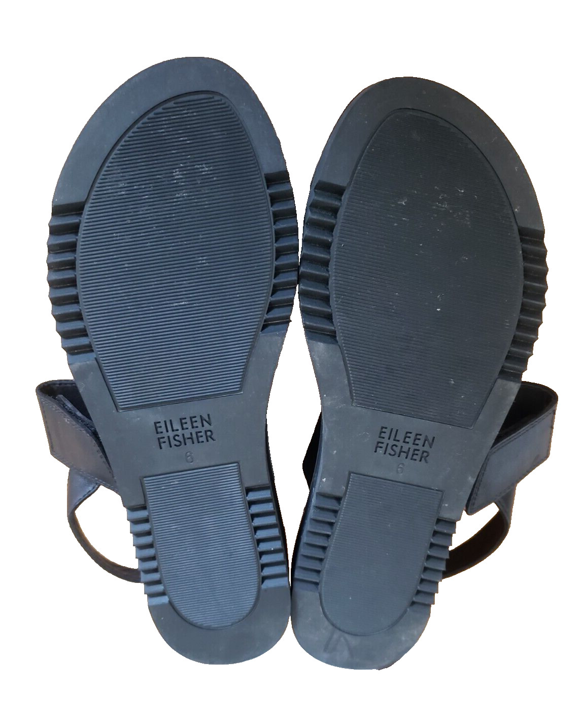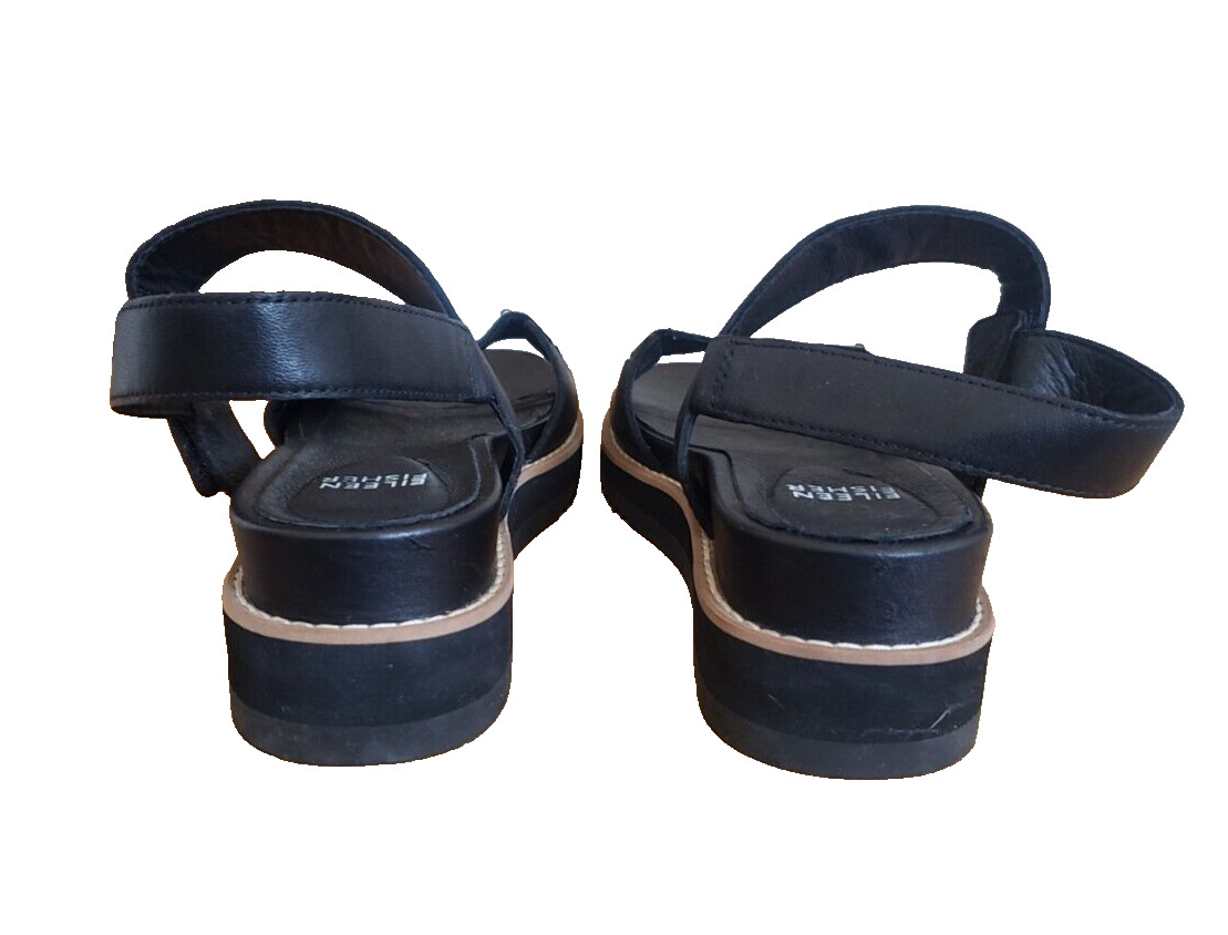EILEEN FISHER Black Tumbled Leather Strappy Sandals Women's Size 6