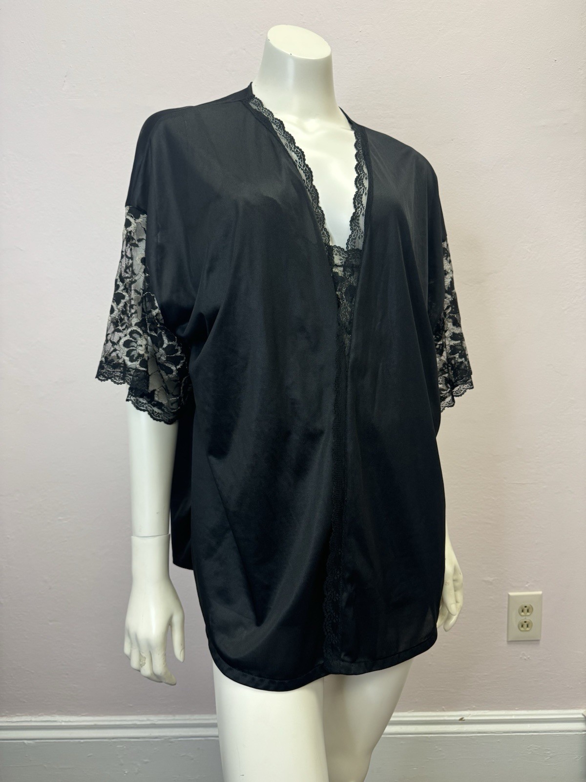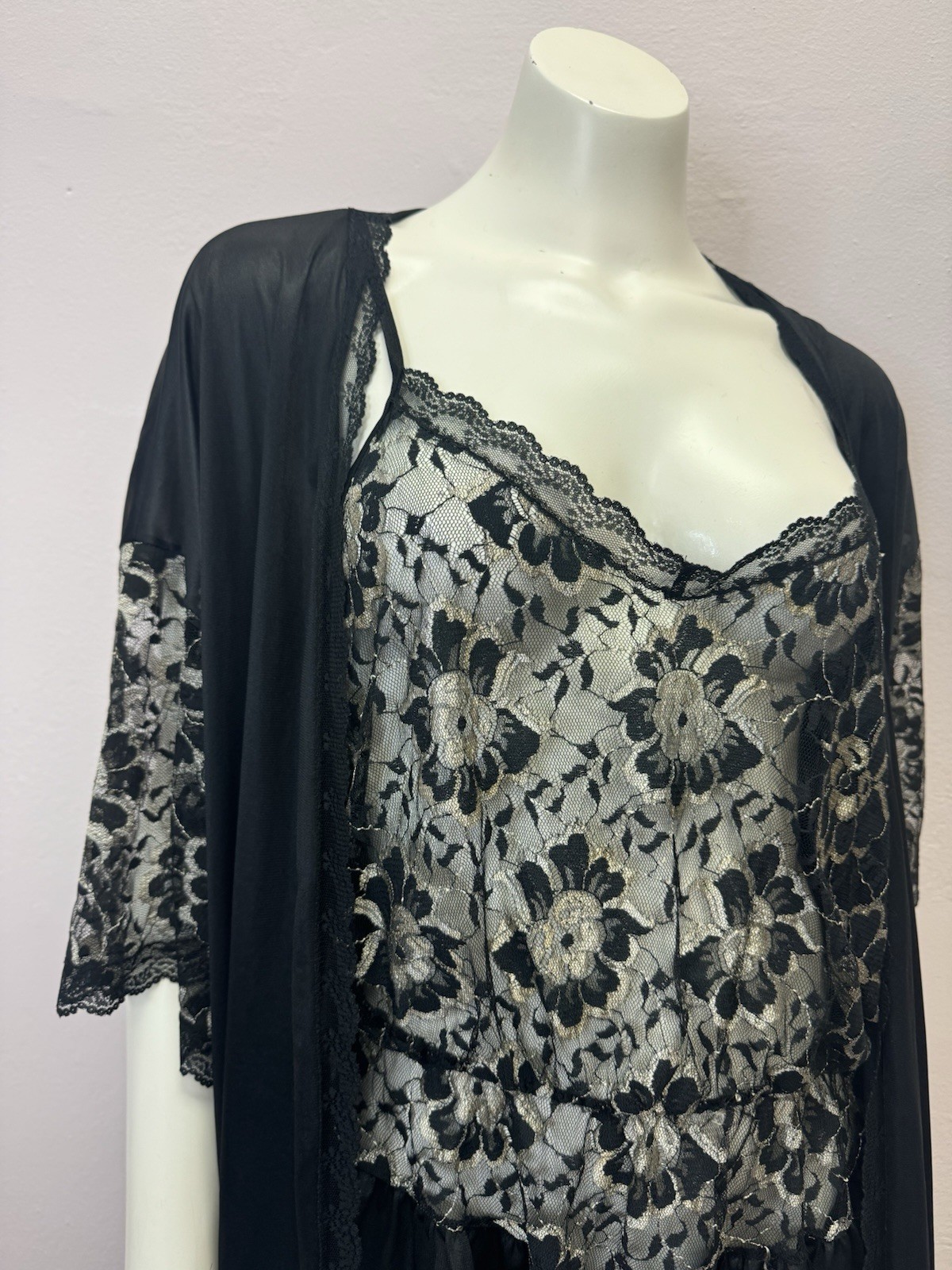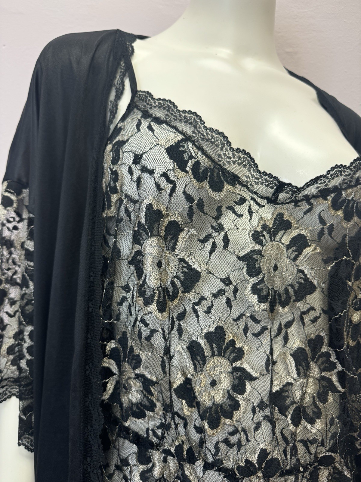 VTG 90's black lace nylon Babydoll Nightie lingerie robe set 1X undercover wair