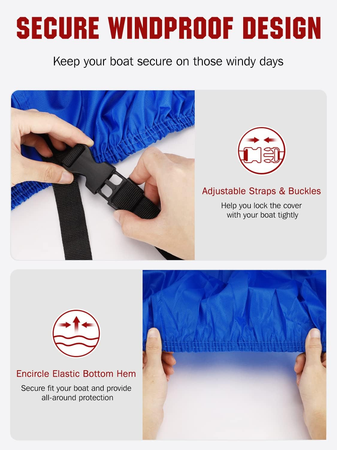 • Heavy Duty Marine Grade Polyester Waterproof Boat Cover, All Weather Protection