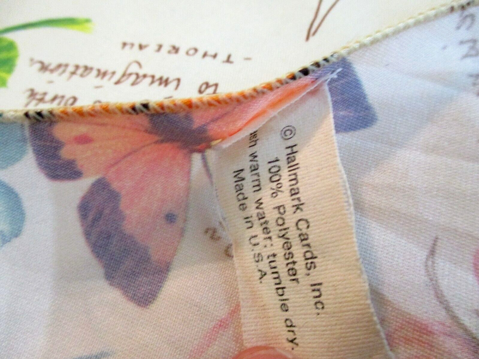 как выглядит VINTAGE 1960S HALLMARK BIRD INSECT BUTTERFLY FLORAL POLYESTER SCARF фото