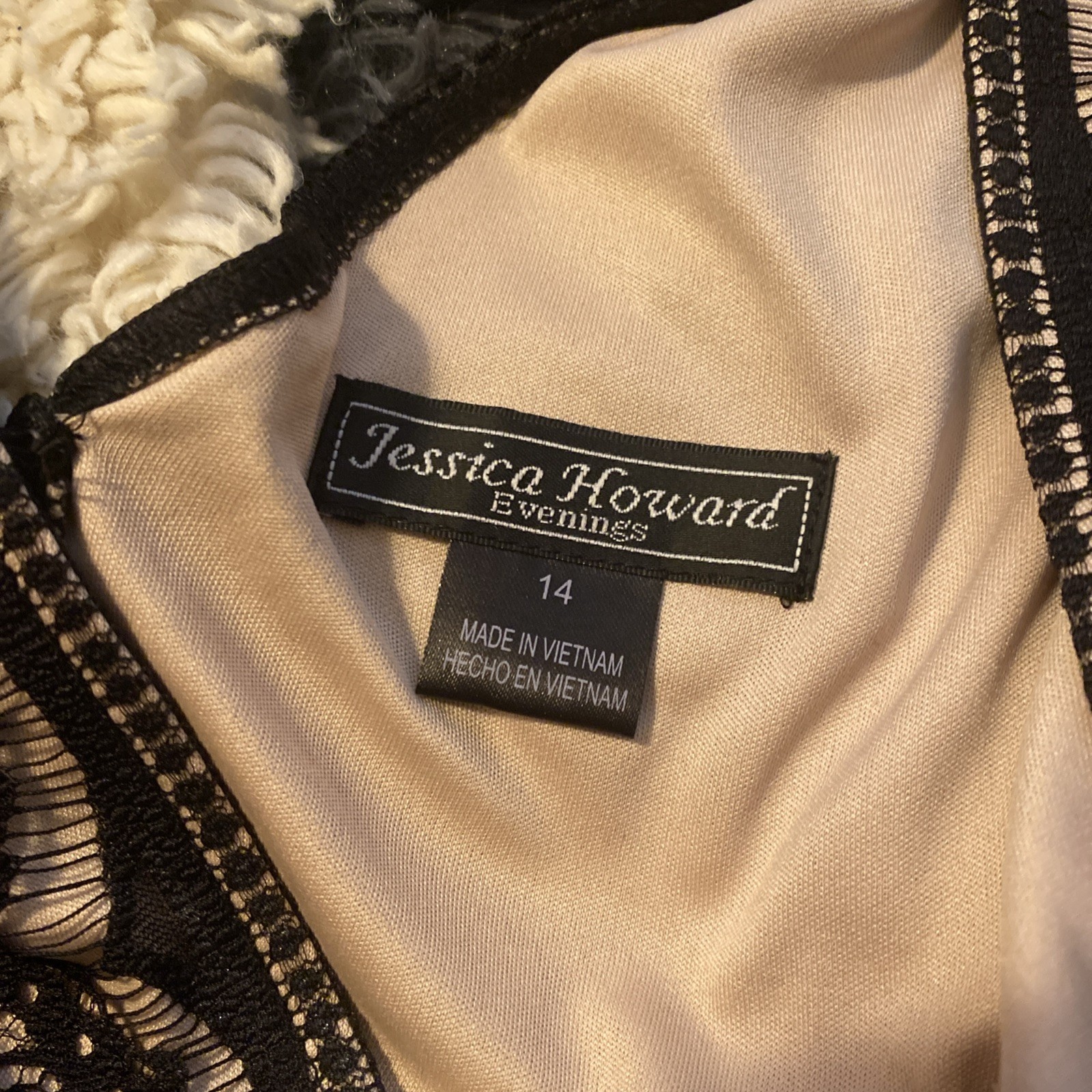 как выглядит Jessica Howard - Black lace v top ruffled sheath dress, sz 14 фото