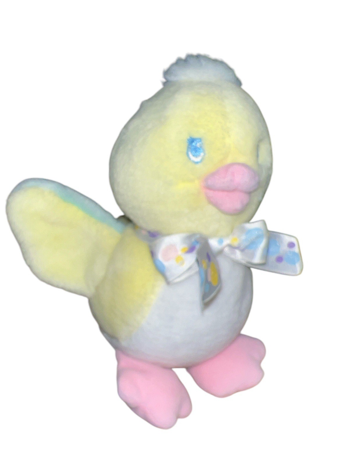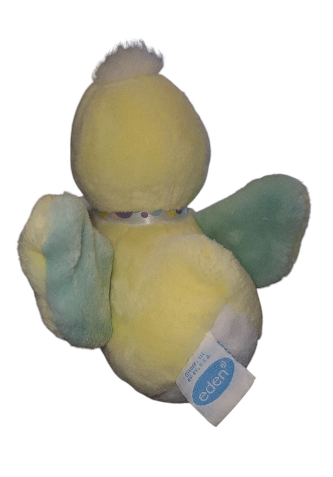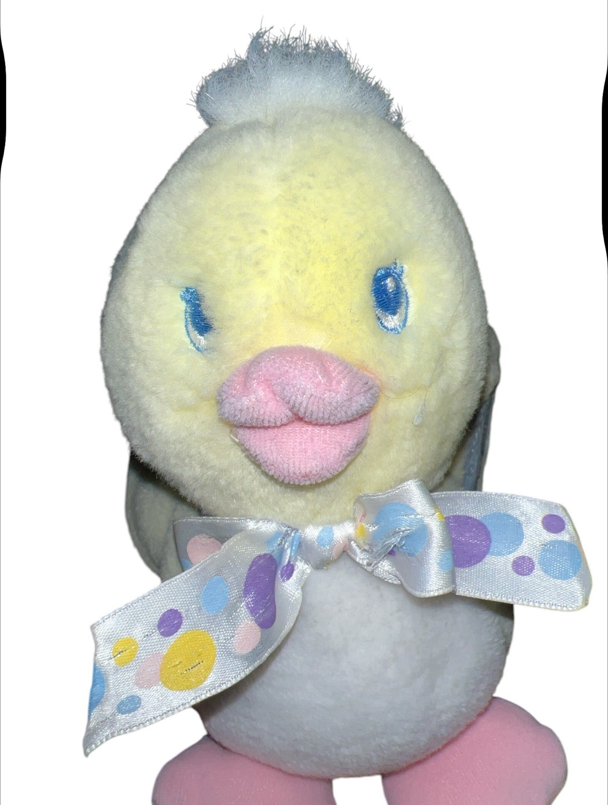 как выглядит Rare Eden Toys Yellow White Baby Duck Blue Embroidered Eyes Polka Dot Bow Read фото