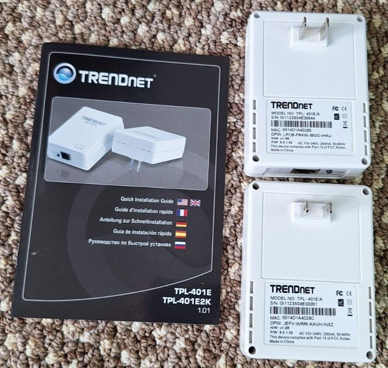 A Pair of Original TRENDnet TPL-401E 500 Mbps Powerline Ethernet AV Adapter