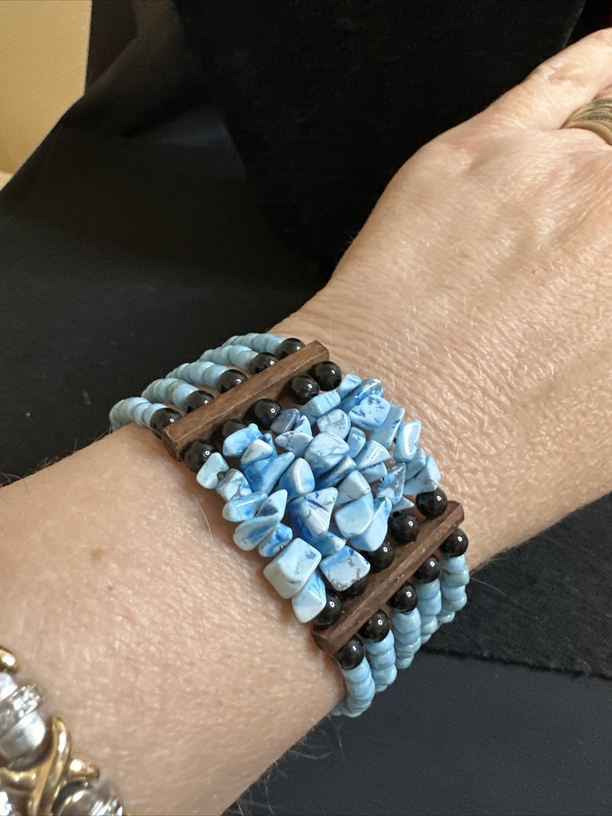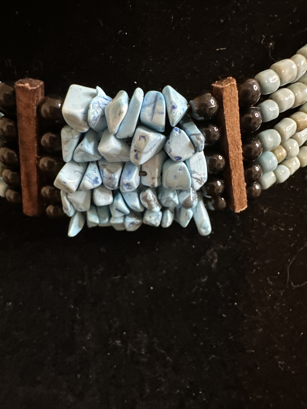 Turquoise Glass Beads Adjustable Choker And Bracelet Set