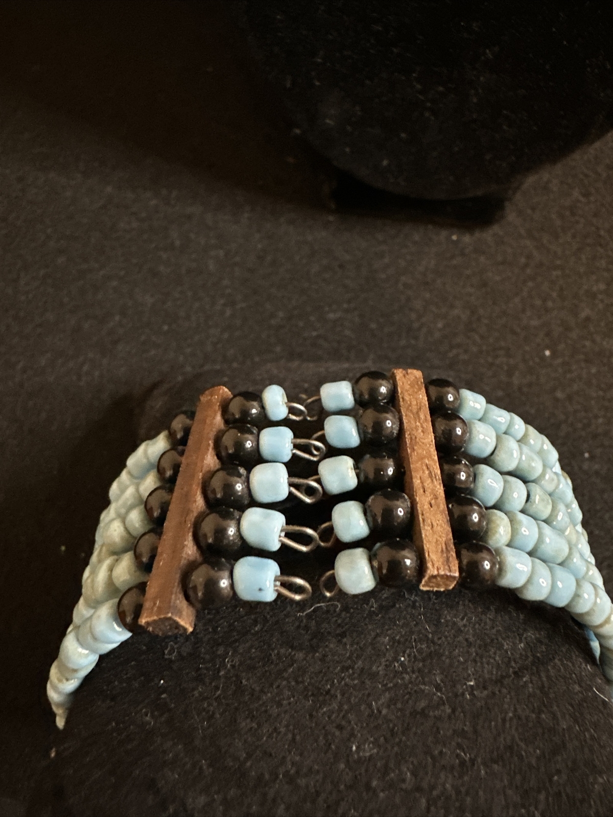 как выглядит Turquoise Glass Beads Adjustable Choker And Bracelet Set фото