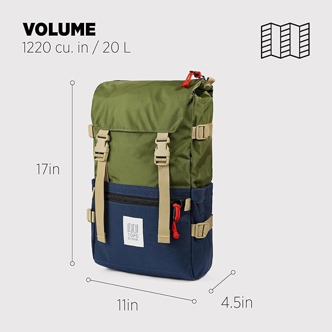 Topo Designs Rover Pack Classic Rover Backpack Cinch Top knapsack Green Blue