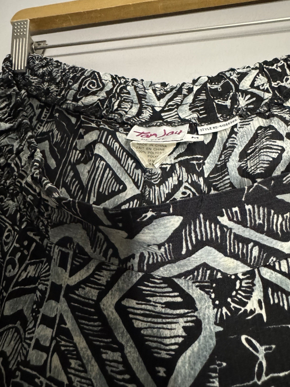 Vintage TanJay Women's Petite M Wide Leg Culottes Tribal Print Black Whiite