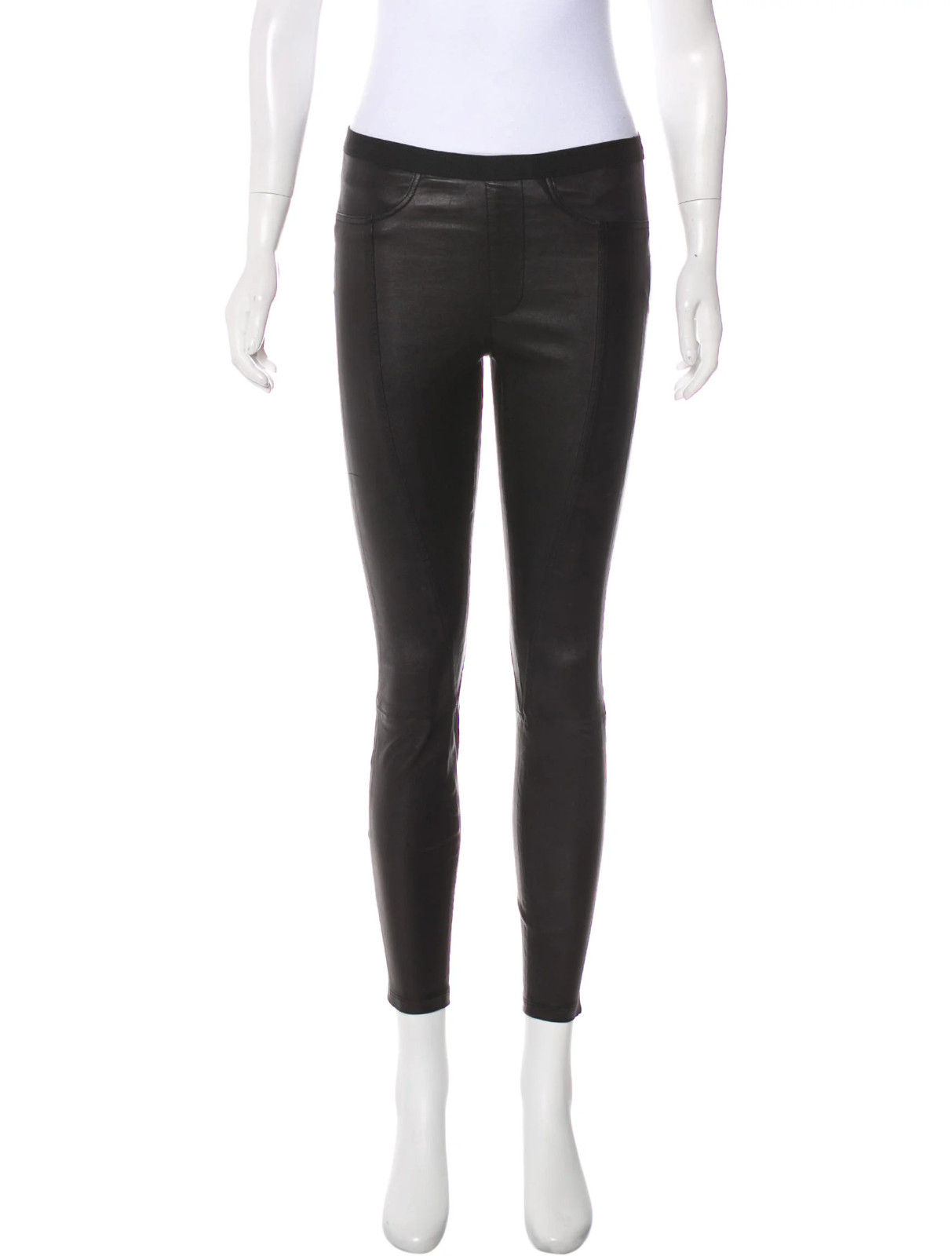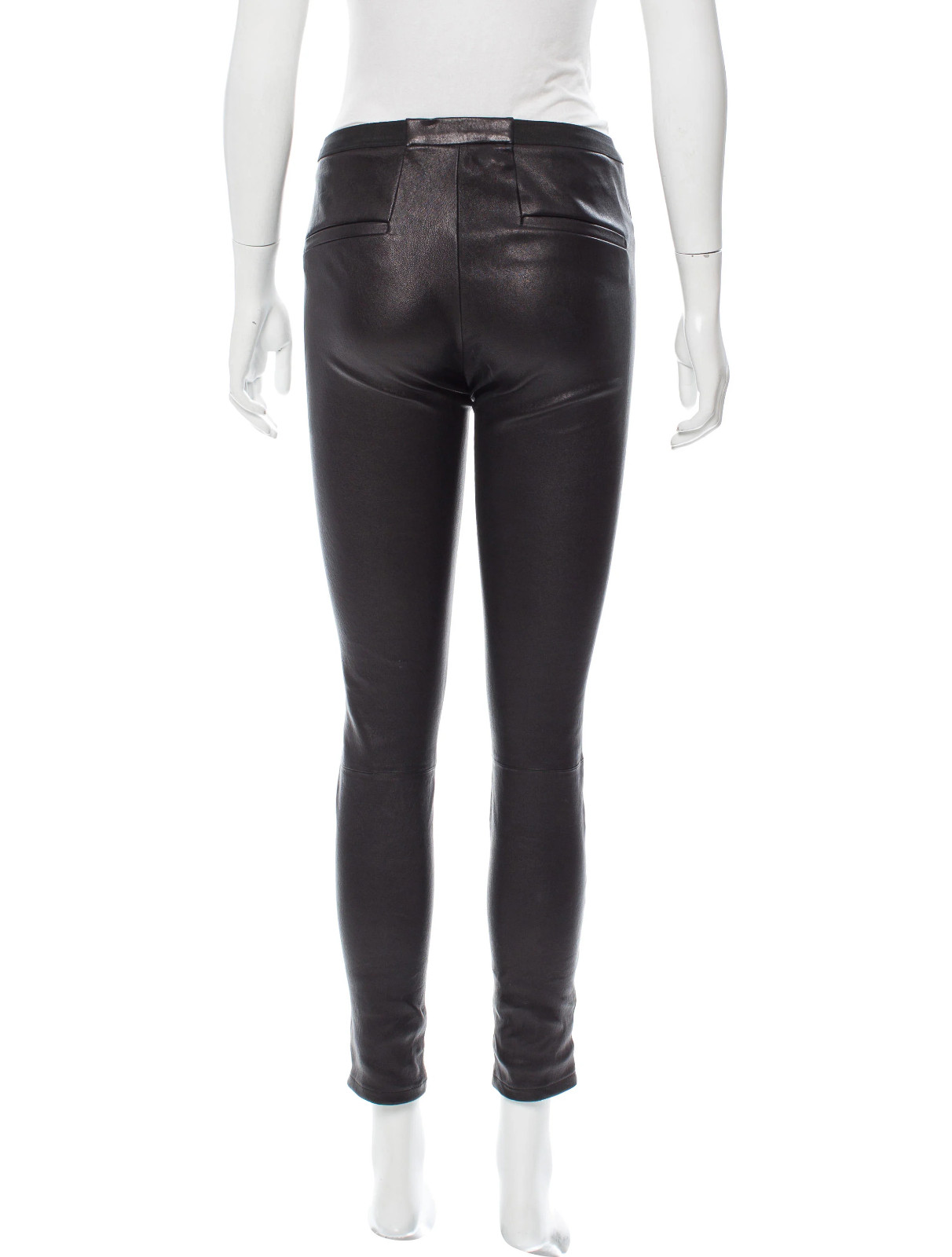 как выглядит Helmut Lang Stretch Plonge LEATHER Leggings CROPPED Pants Jeans Black sz 2 фото