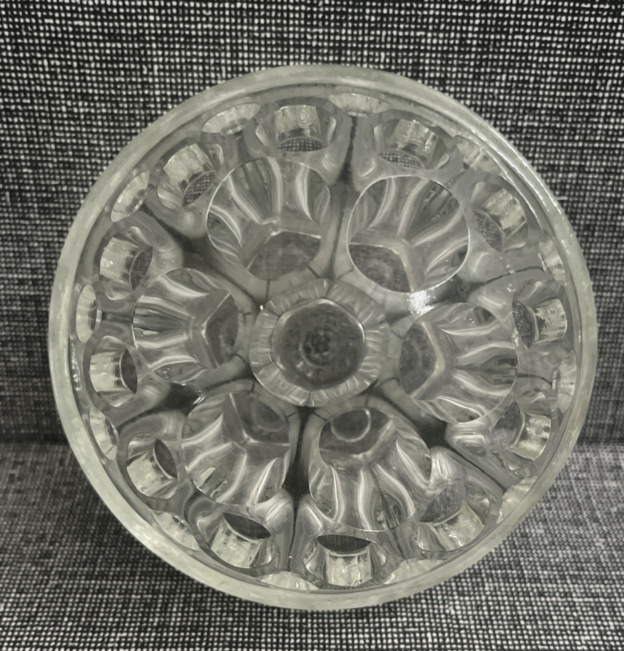 • Vintage Reims France VMC 31 Hole Clear Glass 5 Flower Frogs Original Foil Label