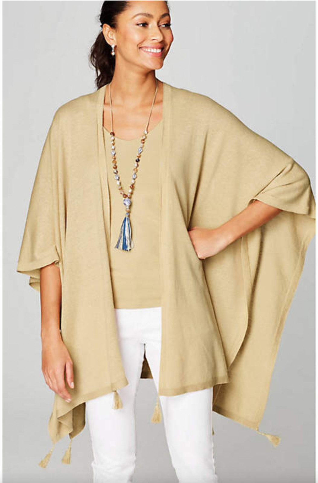 как выглядит J.Jill NEW Gorgeous Linen Blend Tasseled Light Ruana Biscotti NWT 1D6 фото